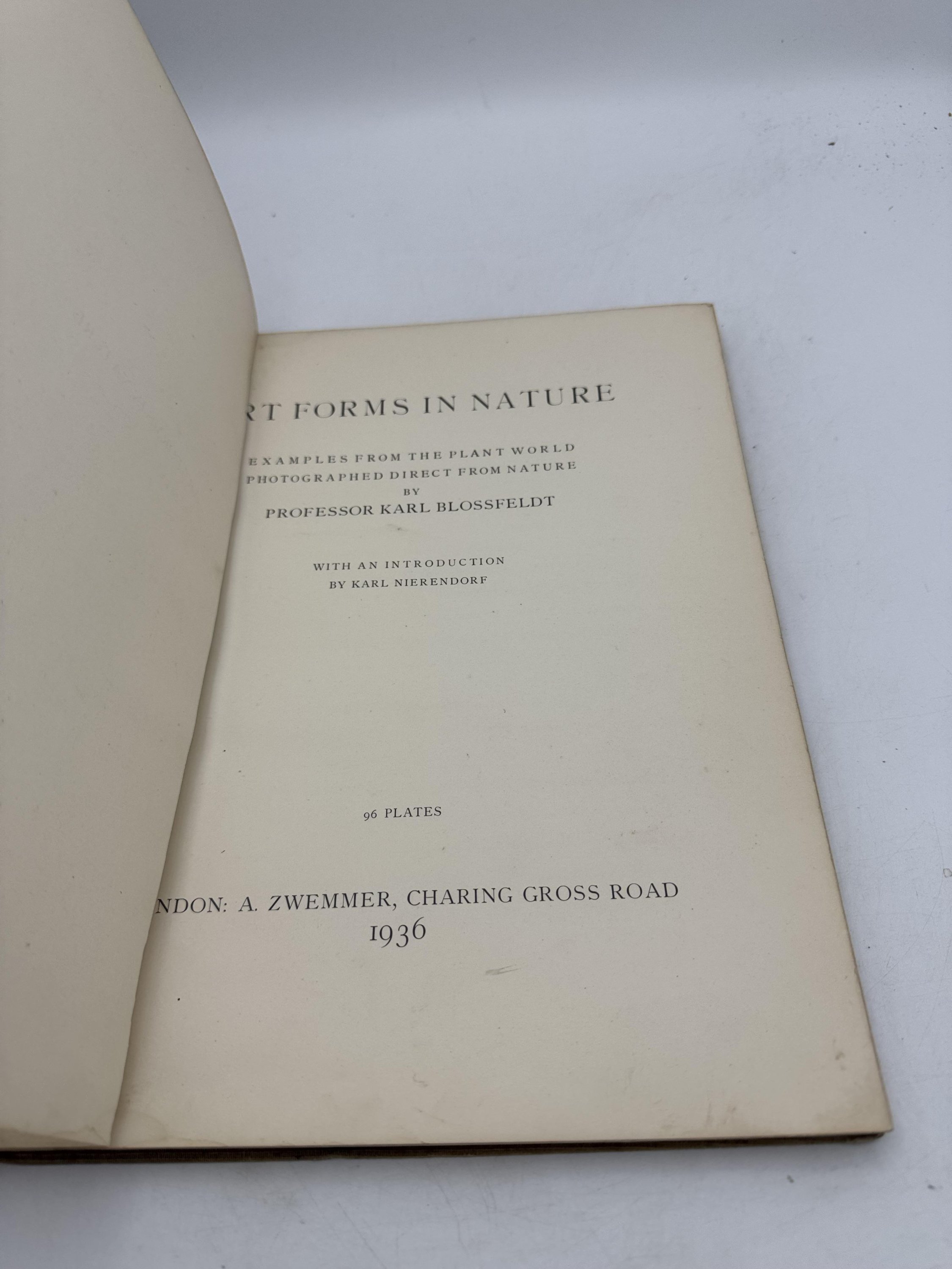 Good 1st English edition 1936 dated Zwemmer hardback, cloth binding, 96 plates. Most of fly-leaf removed, with slit down left edge of front end-paper page, some wear to binding in places, and some marks to cloth, tidy and unmarked. More rare Blossfeldt available.
