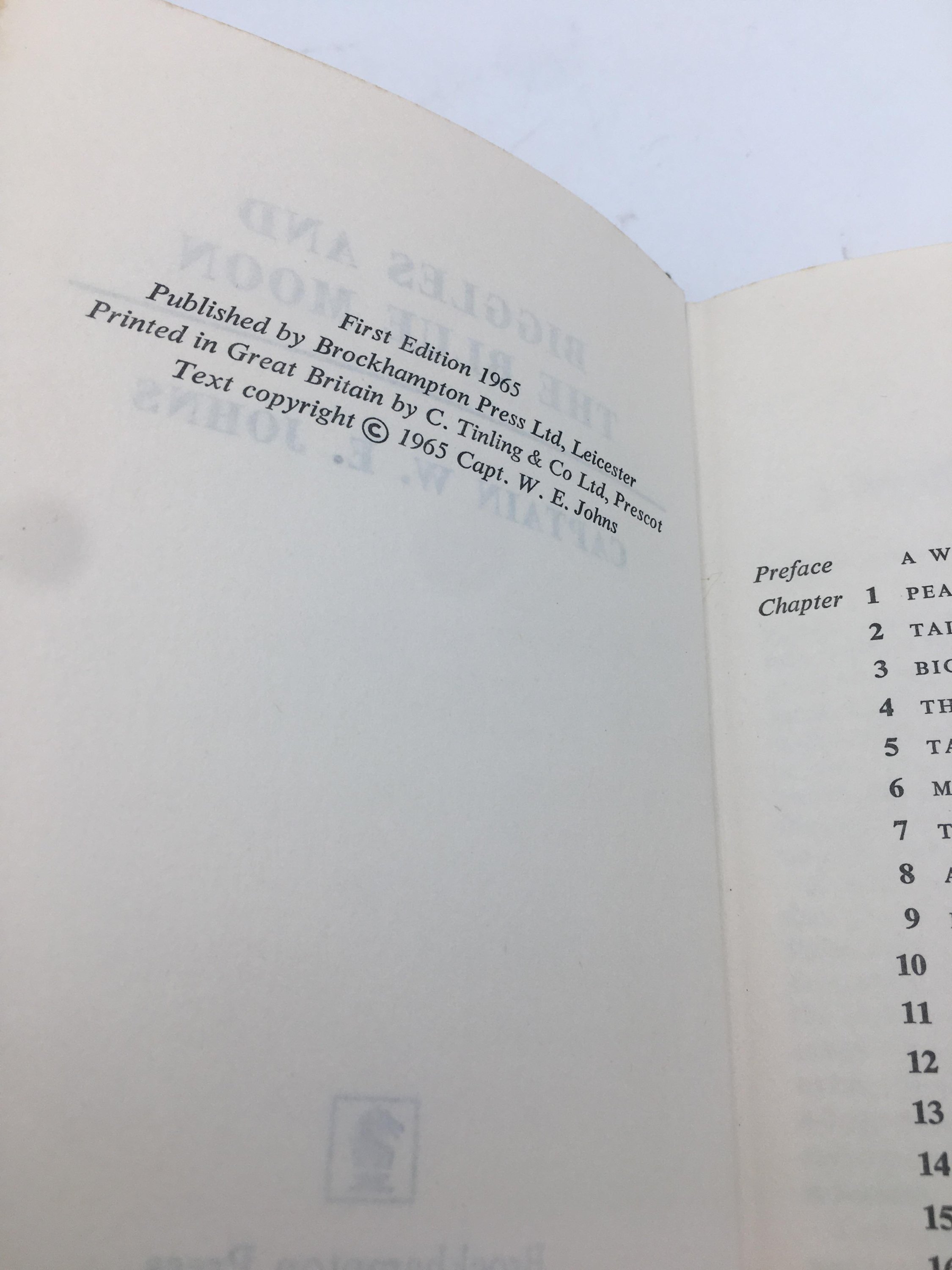 Good+/VG- 1st printing 1st ed 1965 Brockhampton hardback, unclipped DJ, jacket by Leslie Stead. A little rubbing wear mainly along front edges and spine edges of jacket, some patches of foxing to page edges, some lighter patches of foxing to insides of jacket, corners sharp, tight and unmarked.