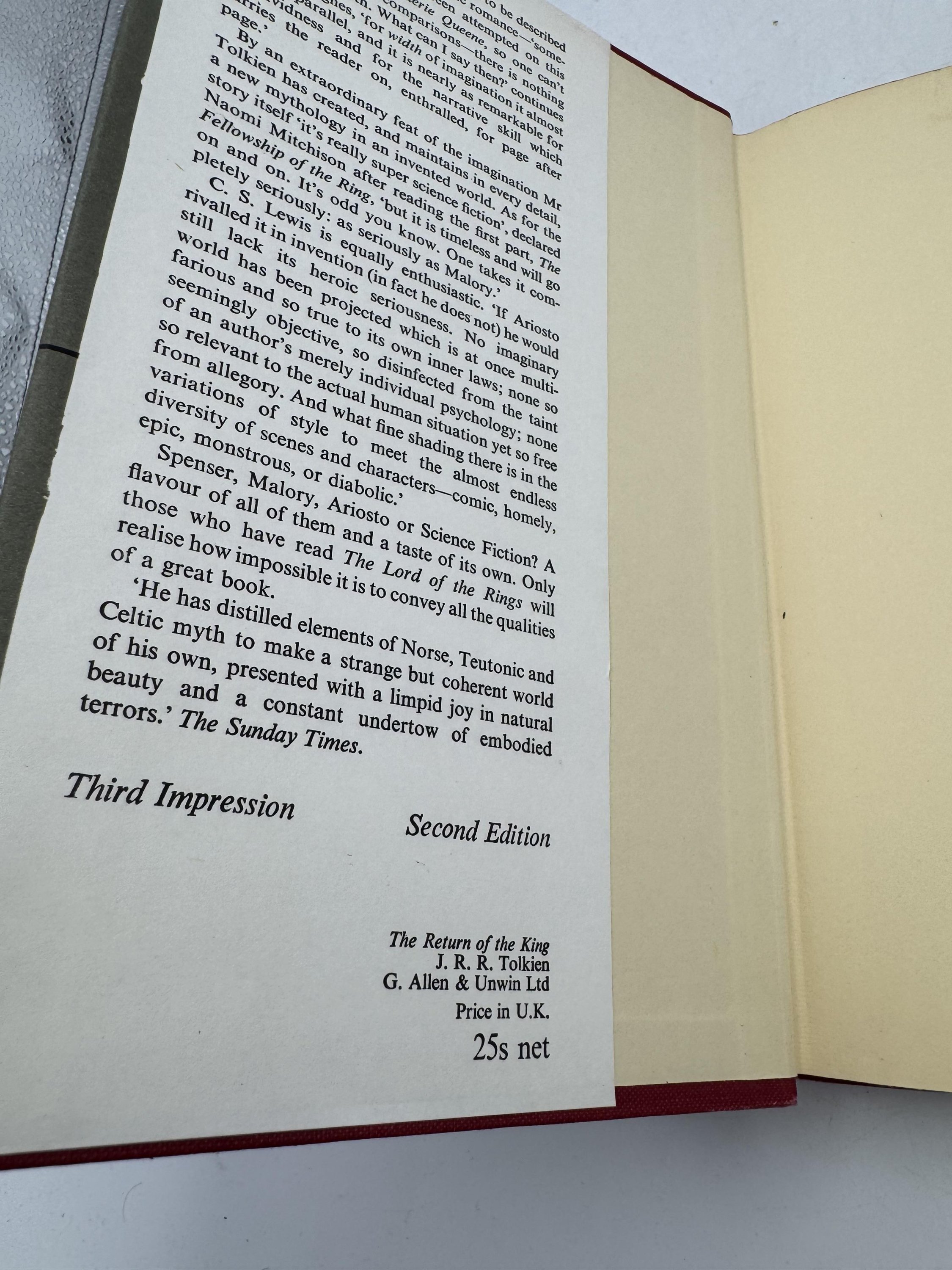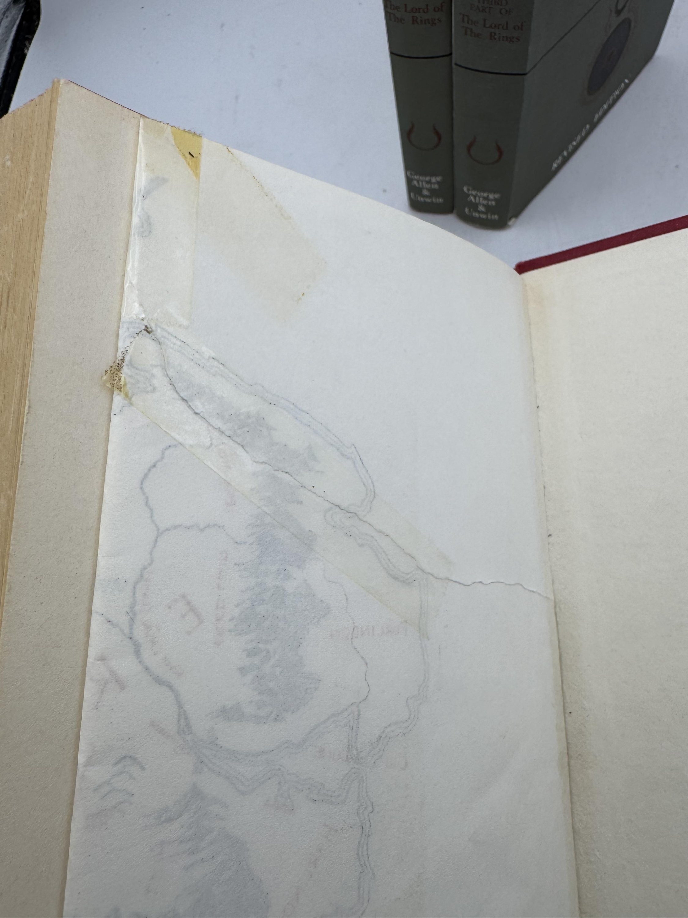 VG-/VG- Allen and Unwin 3-volume set. First volume is price-clipped, the other two have unclipped jackets, red top to page blocks. First volume has tears along edges of jacket which have been tape-repaired, map is complete. The other two have undamaged maps to rear. Light spine lean and a little edge-rubbing with small surface tears to top of spine of jackets, tight and unmarked.