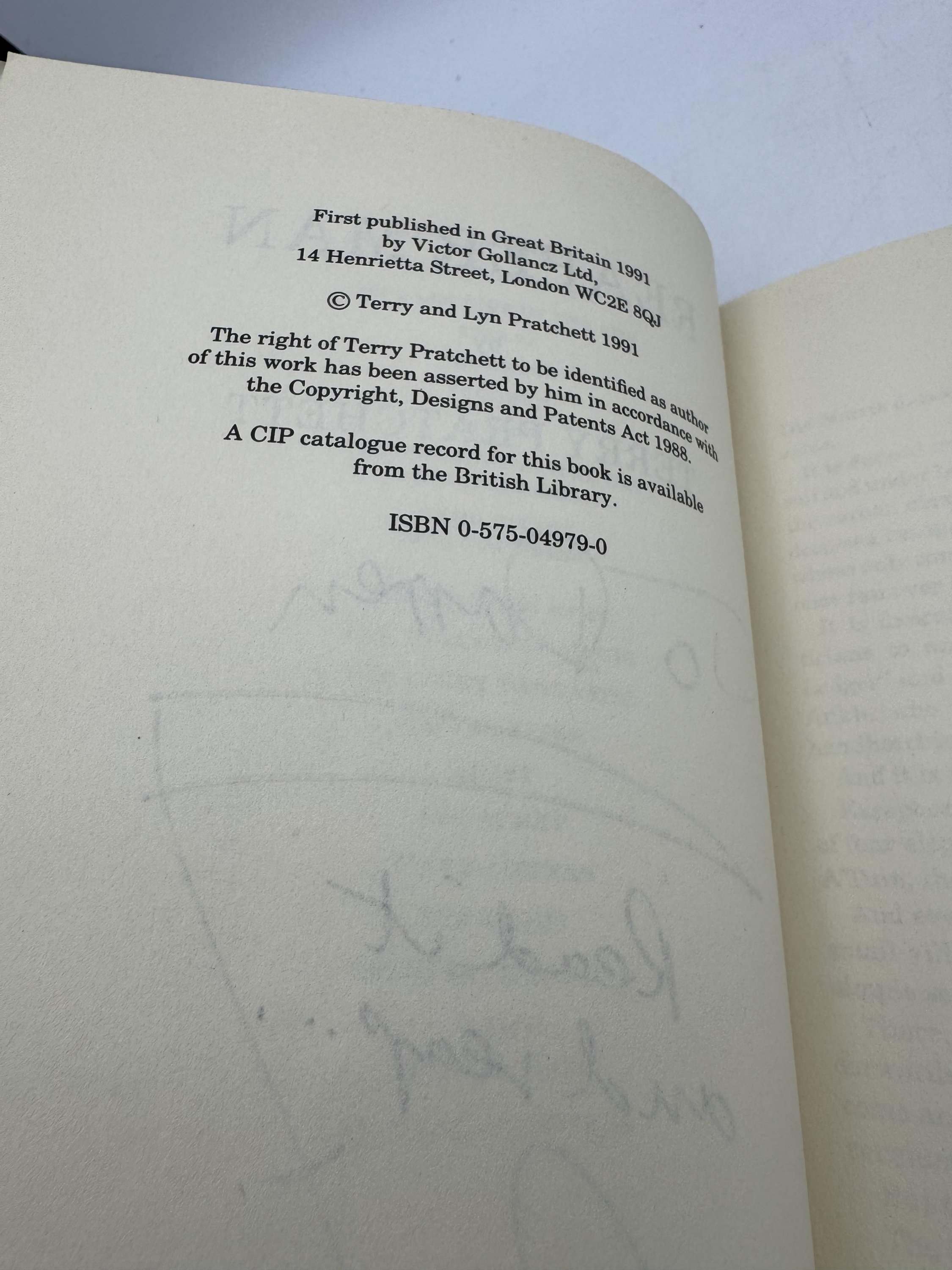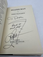 Signed with terrific amusing dedication by Pratchett.