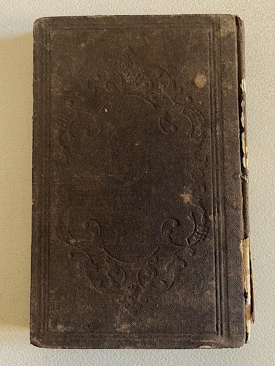 Measures approximately 4 x 6 1/8 inches (12mo). Good with some loss on the spine and small loss on the bottom of one leaf (pp. 93 - seen in 7th photo). Approximately 1 1/2 x 3 inch loss to the bottom of the back flyleaf page (seen in 9th photo). USPS Priority shipping & signature tracking paid.