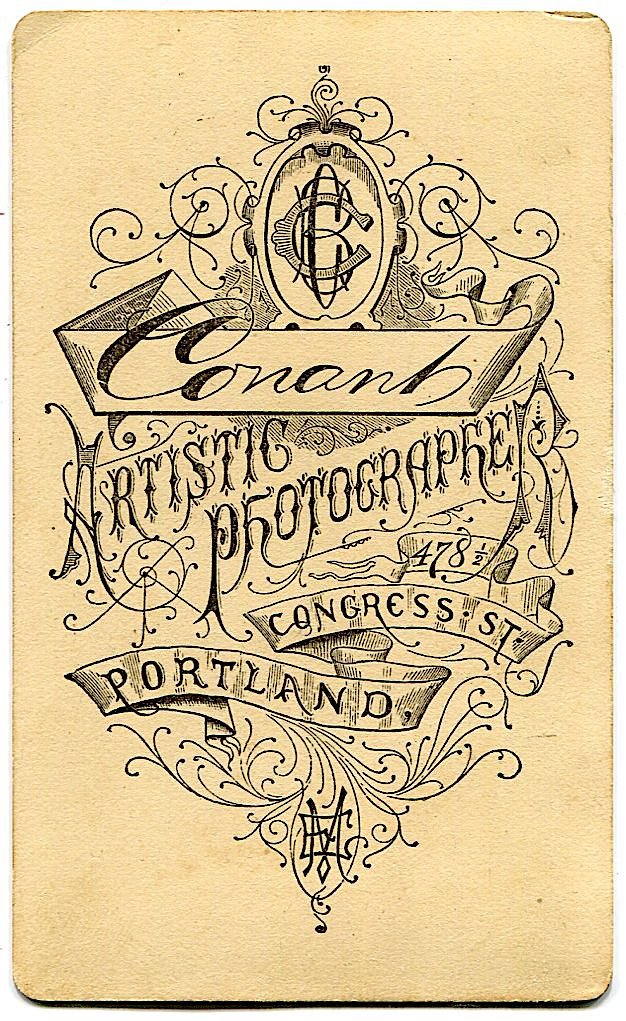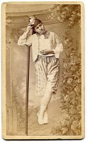 Scarce 1870s CDV photo of a female magician "levitating" while leaning on a thin pole. Photographer is Conant out of Portland, Maine.