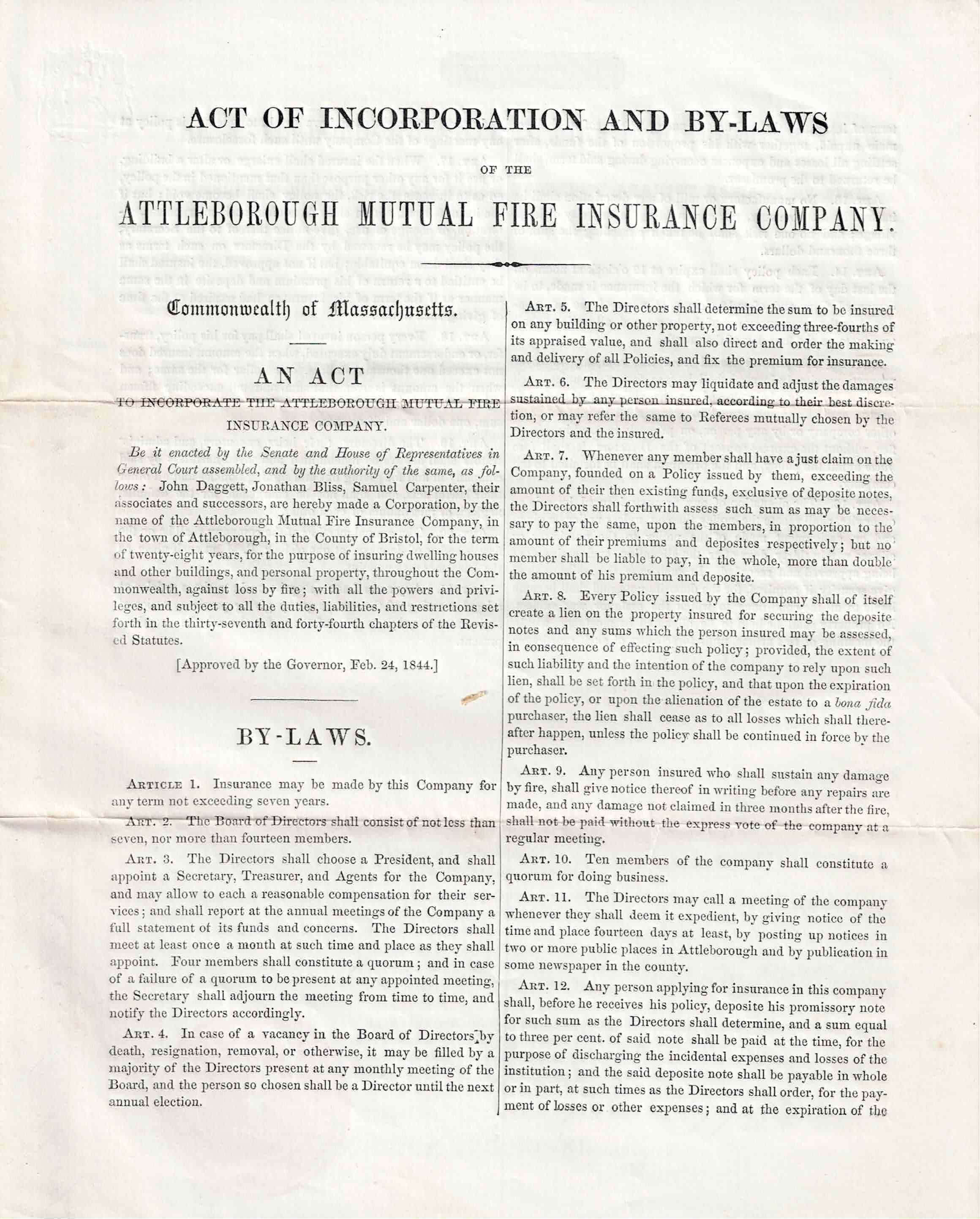 Seekonk, MA, Attleborough Mutual Fire Insurance Co., 1856