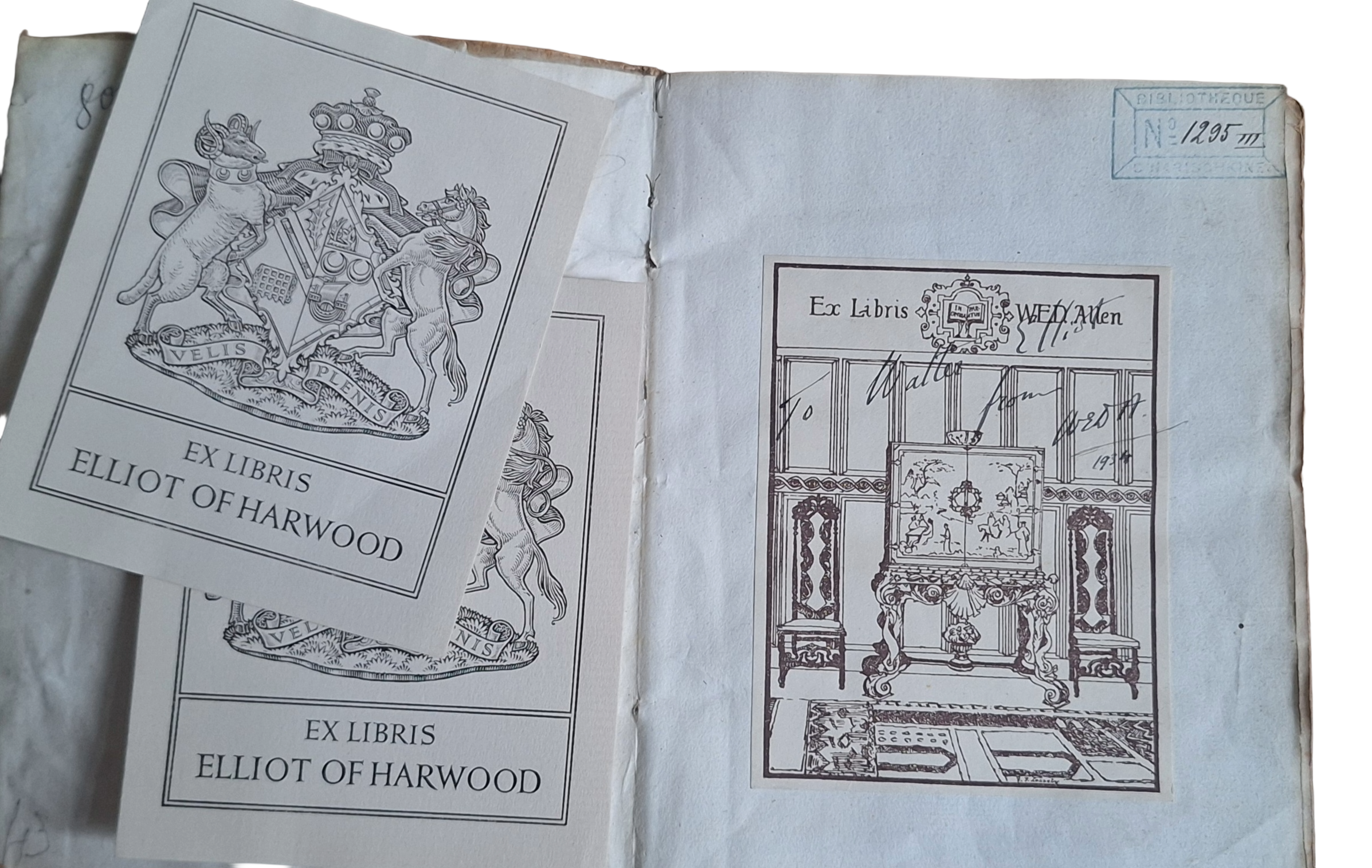 Early ownership inscription to title-page;library stamp of Bibliotheque C. Narischkine; bookplate of Wed. Allen; inscribed by Allen to Walter Elliott in 1934, Minister of Agriculture, then to Baroness Elliot of Harwood DBE and the Elliot of Harwood Trust by descent.