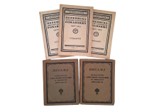 The books were never reissued. In five contemporary half-leather bindings. Original printed dust jackets preserved. The covers of volumes published during the Soviet era were designed by A. Leo. Excellent condition. The editions are of great historical value and rarity.