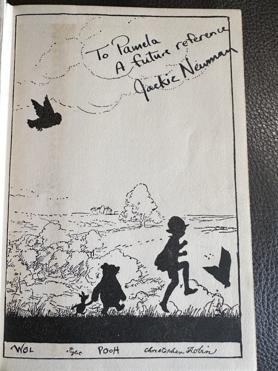 The House at Pooh Corner, inscribed by Newman’s first wife Jackie Newman [nee Witte] “To Pamela, a future reference”