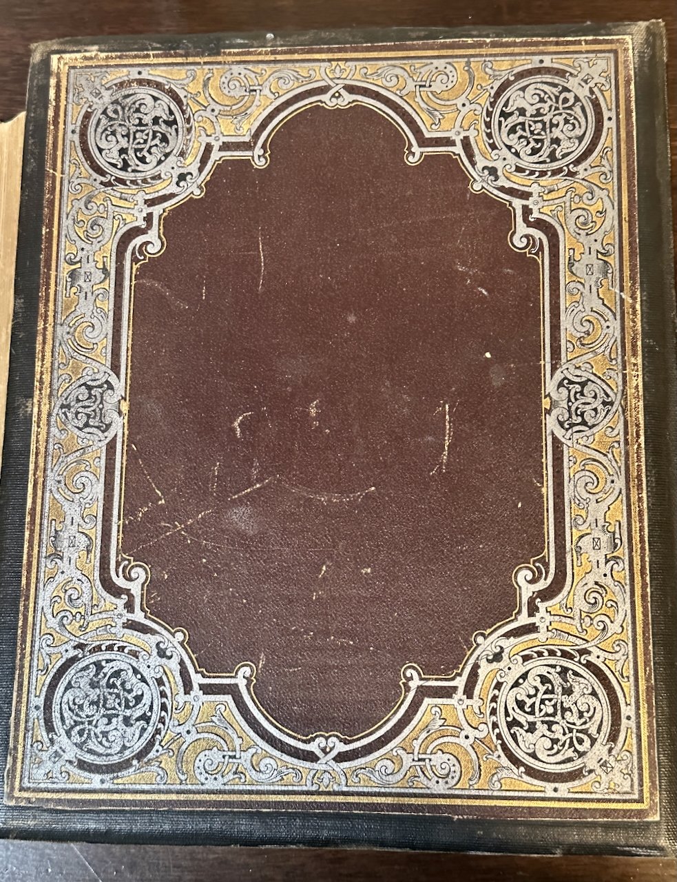 CONDITION: Good; ex-lib, rebound in black cloth with original decorated covers on both recto and verso. Faint library number on spine, remnant of pocket removal on front pastedown, fep creased, penciled notation on title page, paper loss at hinges. The text block and plates are fine, with occasional toning to margins.