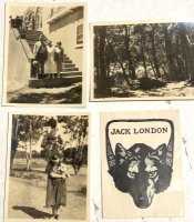 Jack London bookplate, 3 vintage photos, and related correspondence [5 items]