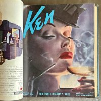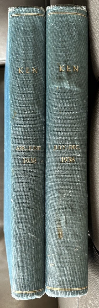 Chicago: Ken, Inc, 1938, approx.13.x10” stapled wrappers, 36-138pp each issue; BOUND IN TWO HARDBOUND VOLUMES, original covers retained, blue cloth, gilt titles on spine. Apr-June 1938 and July-Dec 1938. [Containing in all, Vol 1 No. 1 through Volume 2 No. 11]