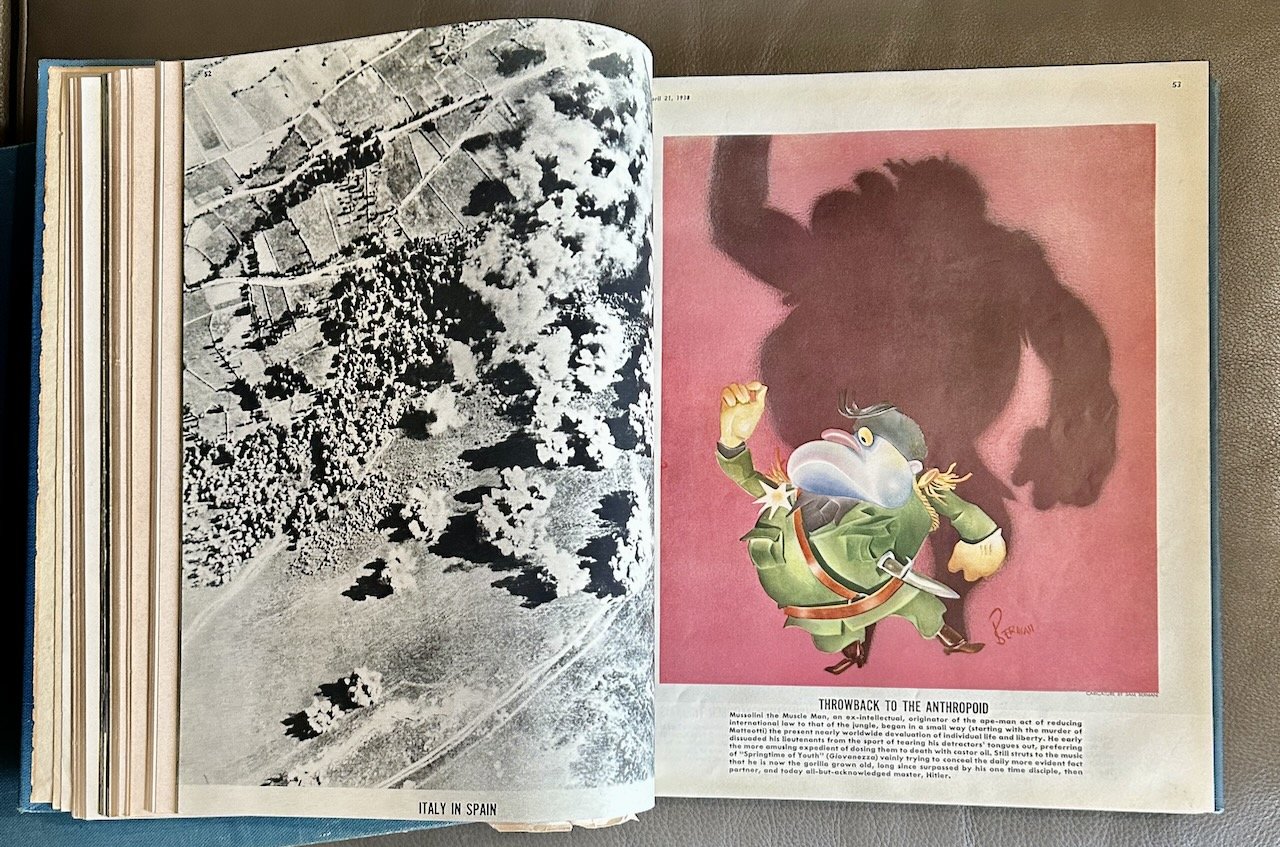 CONDITION: Good; all maps present. Moderate wear to covers with scuff marks to boards and spine. Issues Good to Very Good with 1” open tear to rear cover of issue 1, some browning to page margins. The legends at bottom of some of the front covers and full-page photo spreads appear to have been trimmed about ¼”. Unclear whether these are printing flaws, or the issues were trimmed slightly for binding. The margins of pages containing text appear to be normal.