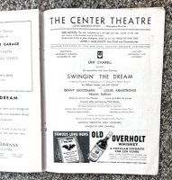 The musical was set in New Orleans in 1890, “at the birth of swing.” It opened at the Center Theatre with fantastic credentials and great expectations. The show boasted a 50-piece orchestra, with Benny Goodman’s band on one side of the stage, and Bud Freeman’s band on the other. Walt Disney Productions gave special permission for their cartoons to be integrated into the set design. Agnes DeMIlle choreographed the dances, and Al Hirschfeld provided the advertising art that was featured on the playbill. Despite everything that the show had going right, it closed after only 13 performances, losing an estimated $100,000.