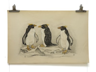 3 Penguins Big size old Litho