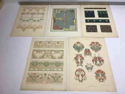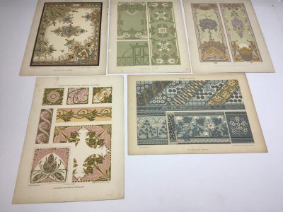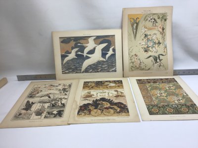 5 antique lithographed prints 1890 - 1910 -- Set 2