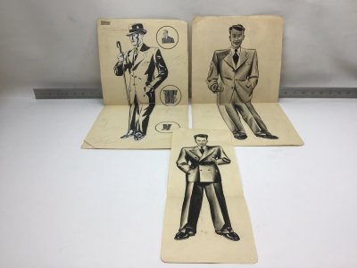 3 authentic Fashion Drawings. Men's fashion.