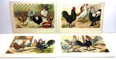 4 Large prints of various chicken breeds.- 1882