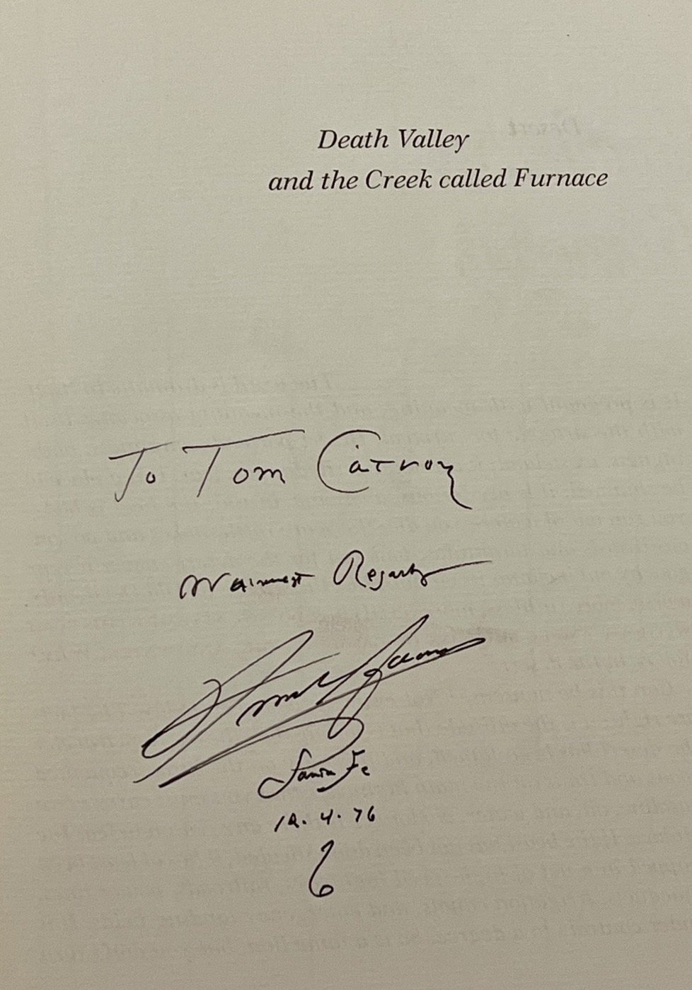 The inscribee, Thomas B. Catron III, came from an illustrious Santa Fe family; his grandfather was a United States Senator and his father a Brigadier General. Growing up in Santa Fe, Catron went to Stanford, fought in the Second World War, and as a lawyer, spearheaded and was a Founder of the Santa Fe Opera, the Museum of New Mexico Foundation and the Spanish Colonial Arts Association, among other Santa Fe cultural institutions.
