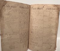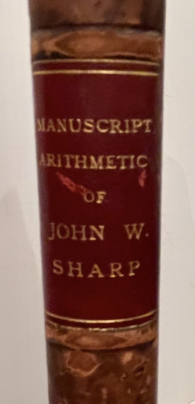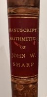 An extensive American arithmetic including exercises and examples of 'Vulgar Fractions; 'Decimal Fractions;' 'Single Rule of Three;' 'The Universal Rule of Proportion;' 'Laying On and Taking Off Percent;' 'Tear and Trett;' 'Involution or the Raising of Powers the Square Root;' 'Evolution or the Extraction of Roots;' 'Square Root;' 'Cube Root by Another Rule;' ' Barter;' 'Profit and Loss;' 'Partner Ship;' 'Insurance Comission(sic);' 'Brokerage and Percent;' 'Equation of Payments;' 'Interest;' and 'Simple Interest.' Interspersed with aphorisms and children's names and dates. John W. Sharp (1803-1884) was born in Fayette County and settled in Nicholas County, Kentucky. With six months of formal schooling, Sharp became a successful farmer; he served as County Commissioner and was elected to the Kentucky legislature in 1838. (Copy of biographical sketch of author from W.H. Perrin's 'History of Bourbon, Scott, Harrison and Nicholas counties, Kentucky' laid in).