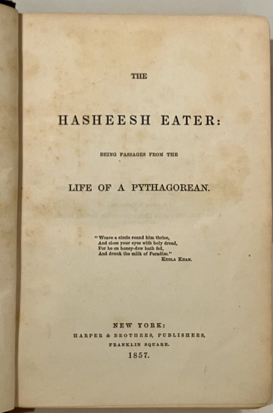 Ludlow's autobiographical work chronicling his personal experiences with hashish—a concentrated cannabis extract imported from the Middle East—detailing the drug's hallucinogenic effects, visions, and philosophical insights during his college years at Union College in the 1850s. Throughout the book, Ludlow colorfully describes his psychedelic journey that led to extended reflections on religion, philosophy, medicine, and culture. The first book on cannabis in English and the first full-length work of American drug literature.