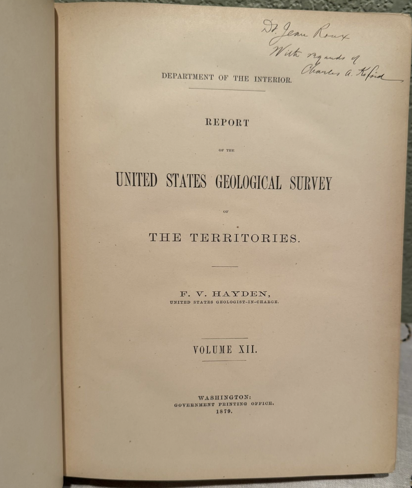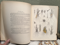 The inscribed; "To Dr. Jean Roux With Regards of Charles A. Kofoid." A well known zoologist who is attributed with developing marine biology. dark brown cloth, split rear top along spine cloth, 321 pages, 12" x 9.25", 321 pages indexed, full color Plates I-XLVIII, bookplate front paste down Griswold College Library presented by the Department of Interior #6330, name written ffep and stamped, inscribed title page: To Dr. Jean Roux With Regards of Charles A. Kofoid.