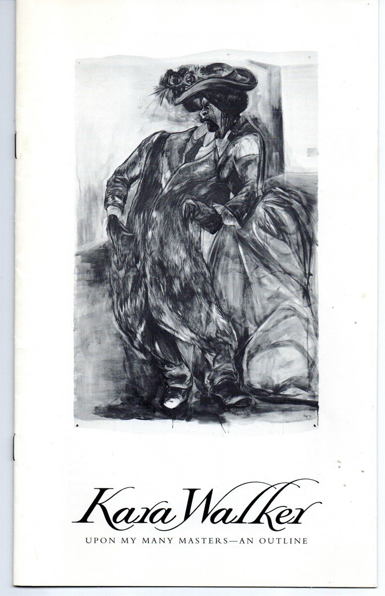 10pp, including inside covers; 10.75 x 6.5"; stapled, illustrated white wrappers. Published as part New Work, a series of recent work by younger and established artists. Includes a short biography, two pages of reproductions of her work, a five page Q&A with Walker, and Curriculum Vitae with facing list of works in the exhibition on facing rear inside cover. Kara Walker's is currently participationg in a group exhibition at the Los Angeles Museum of Contrmporary Art with the deconstruction and remaking of an original statue of Stonewall Jackson entitled, Unmanned Drone.