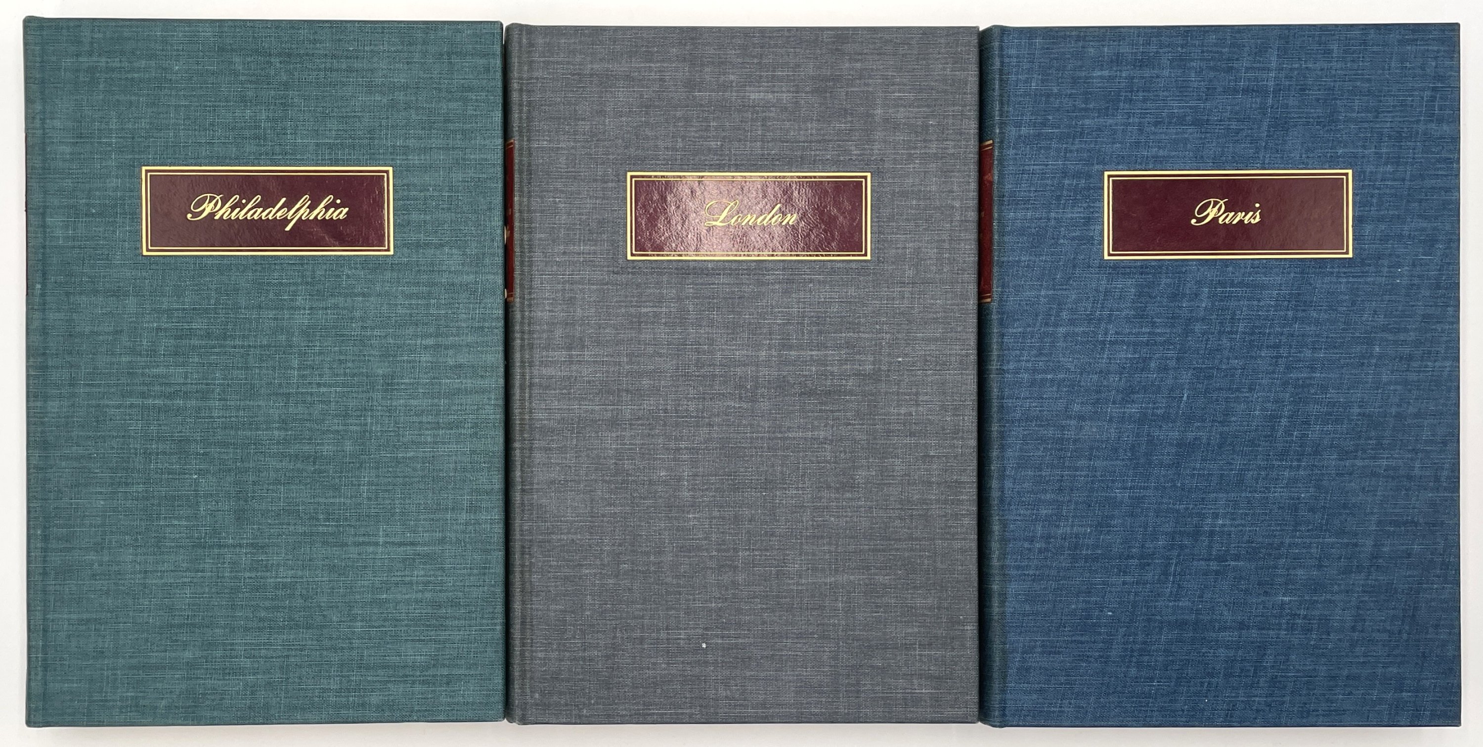 Three quarto volumes. 845pp. Illustrated. Publisher’s teal, gray, and blue cloth, gilt-stamped leather titles to spine and front cover, top edges gilt, others deckled, original marbled paper-covered card slipcase.