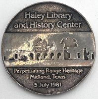 Evetts Haley Commemorative Medallion. Haley Library and History Center. Perpetuating Range Heritage, Midland, Texas, 5 July 1981.