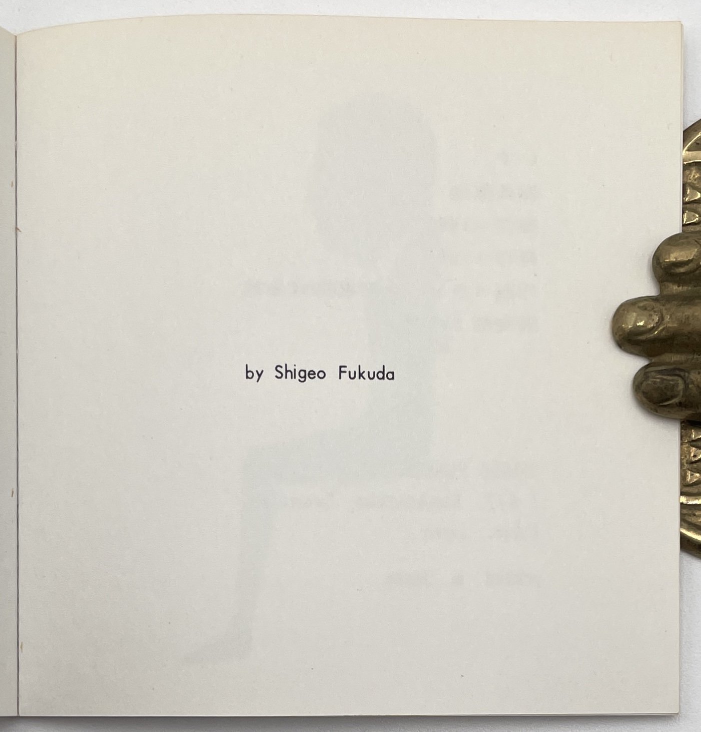 64mo (approx. 3.5 x 3.5 inches). [26]pp. Illustrated with graphic designs by the author. Publisher’s card wraps. Text in Japanese.