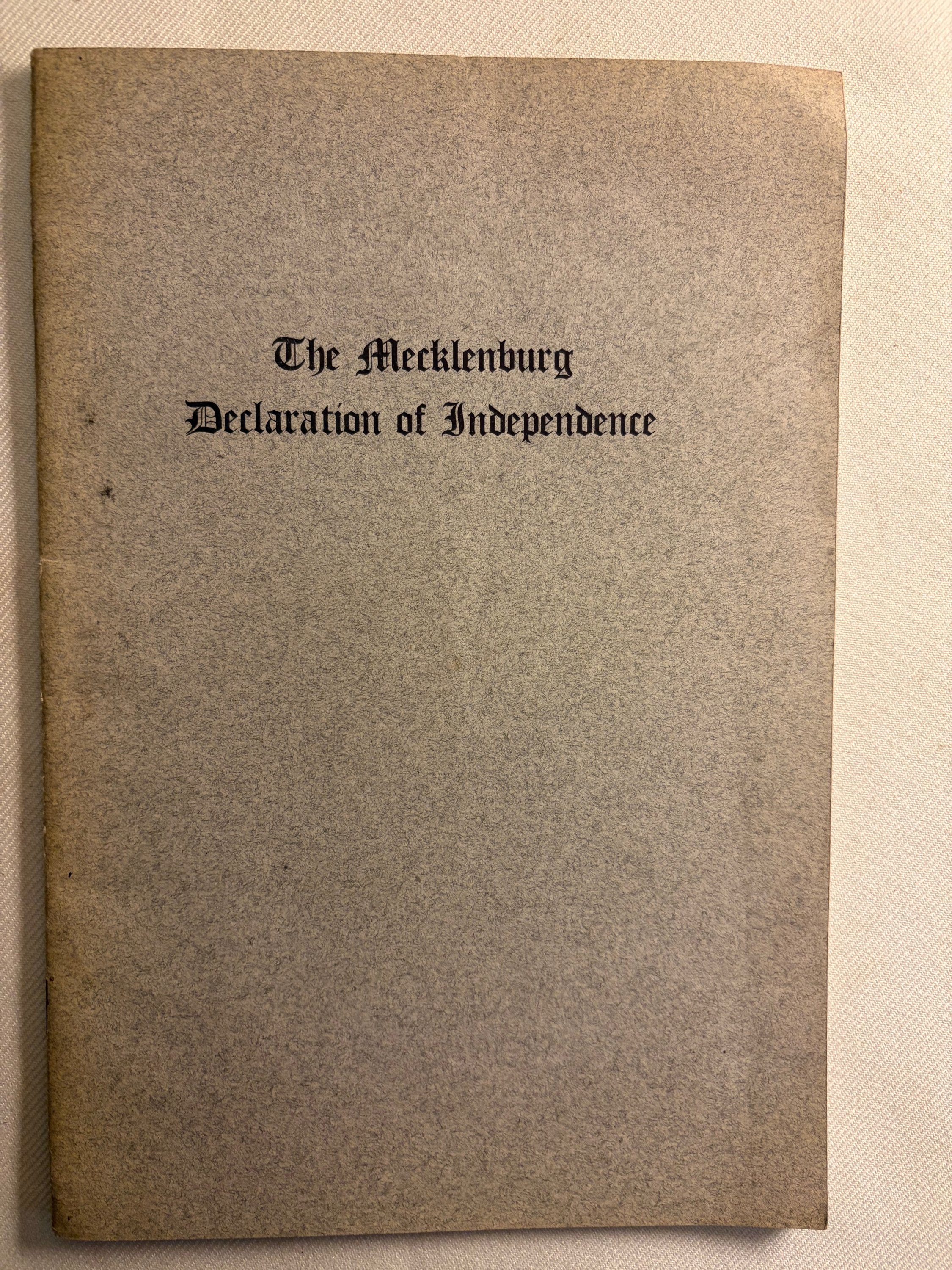 'In September, 1904, Mr. O. J. Lehman of Bethania, N. C. discovered among the papers in the Moravian Archives (The German population was very prominent in North Carolina particularly in Mecklenburg, County) the account that at the end of the 1775th year, that in May, June or July, the County of Mecklenburg in North Carolina declared itself free and independent of England. It is signed by Miss. Fries on the inside flyleaf.
