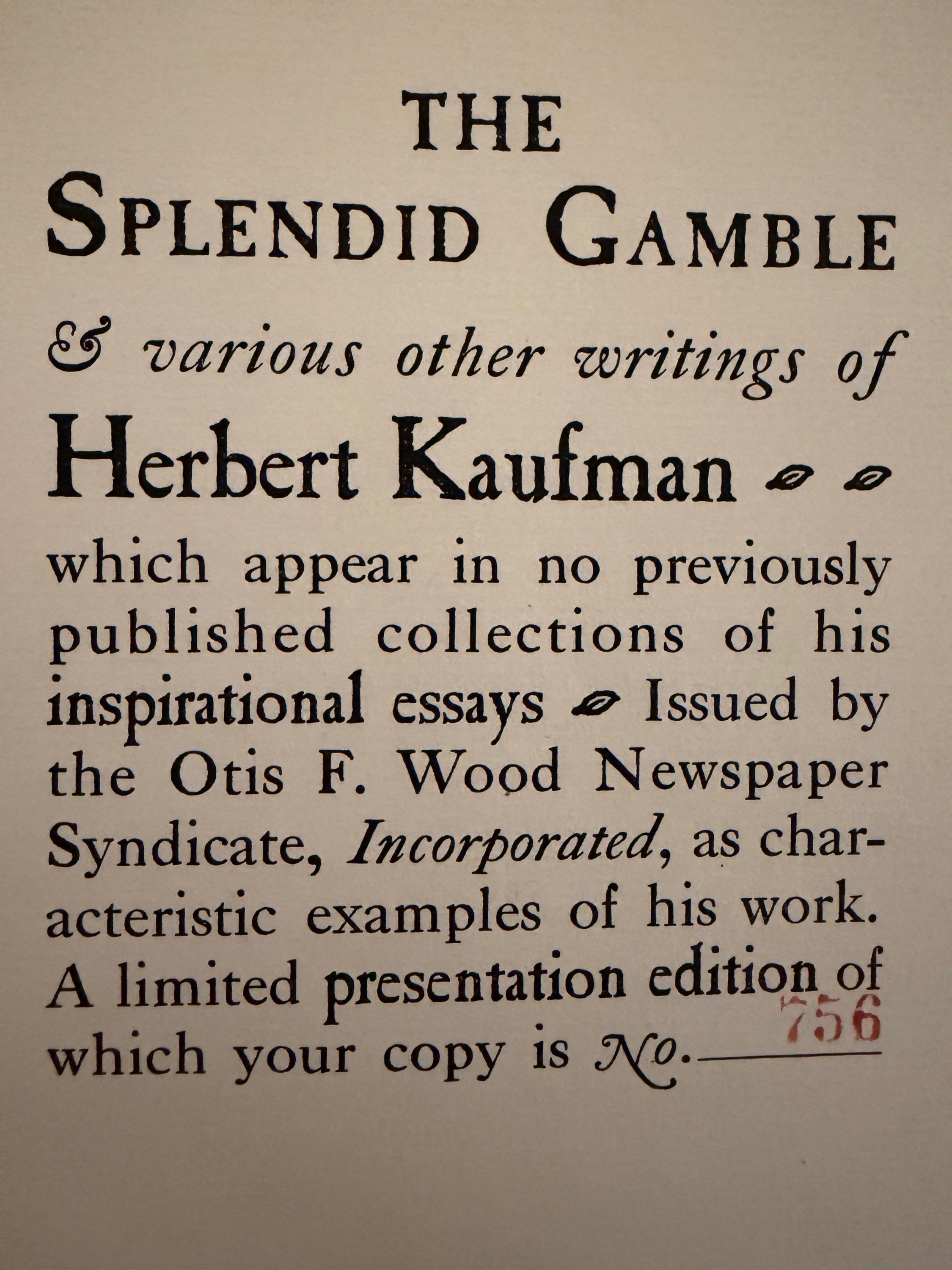 Herbert Kaufman was an essayist for the Otis F. Wood Newspaper Syndicate in New York City. The essays included in this volume were not previously published.