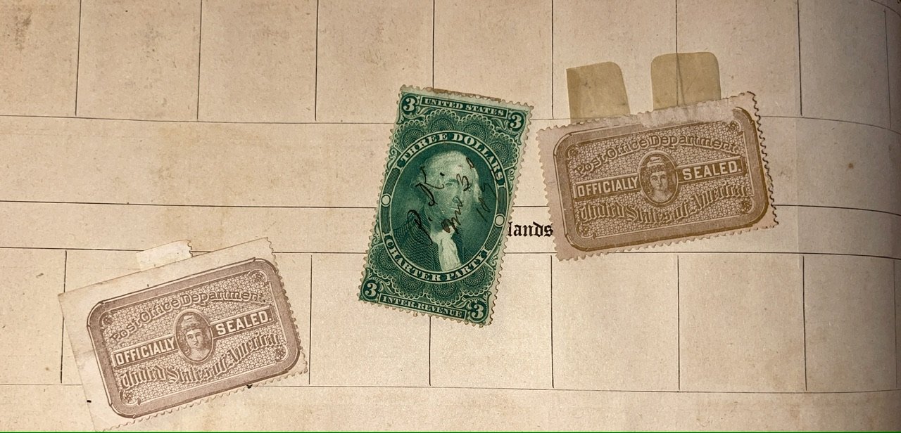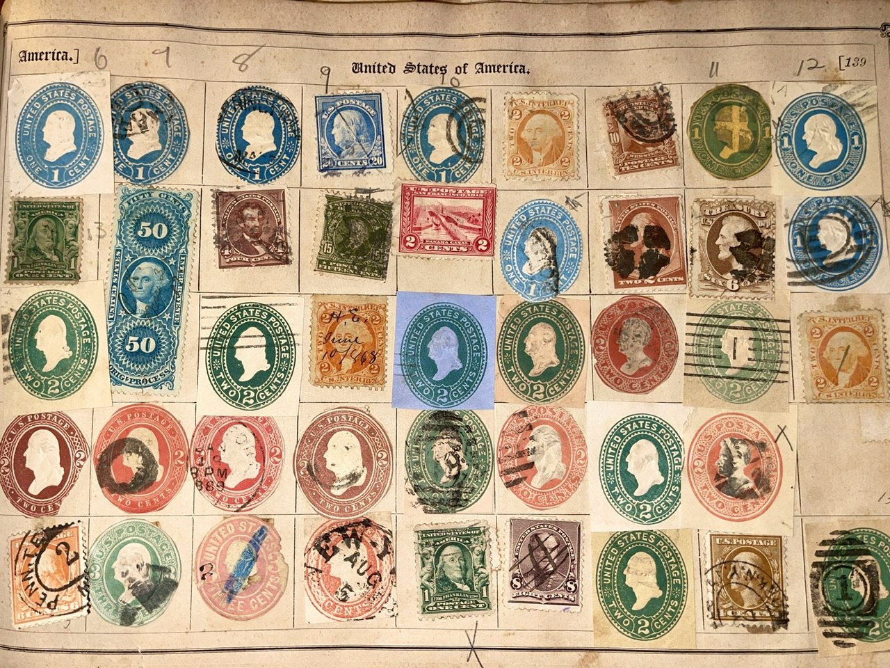 Of particular note: 1890-1 Hartford Post Office vernacular sample-cancel sheets, by Postmaster John C. Kinney, record “Held for Postage,” “Misdirected,” and other handstamps (verso of 1890 calendar leaves). Mixed condition but complete and unsophisticated—an evocative period artifact of 19th-century American philately with genuine postal-history interest.