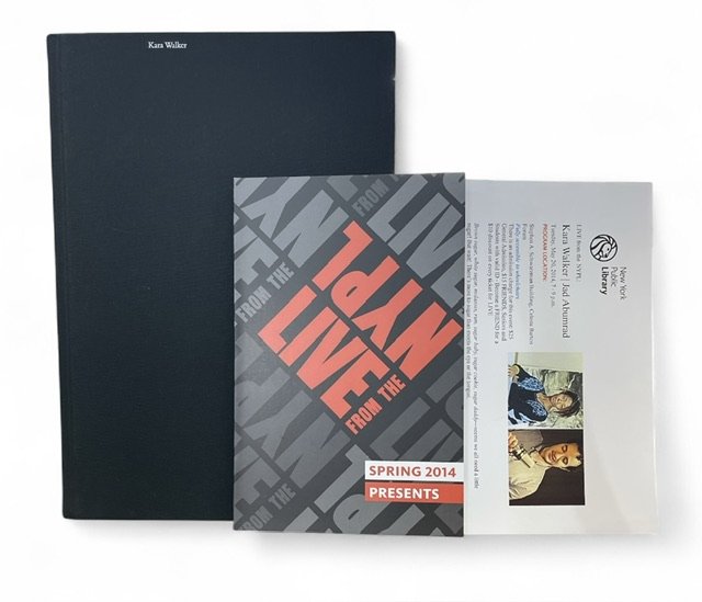 4to. Original black cloth, gilt lettering to upper cover. Second printing. Illustrated throughout with Kara Walker’s silhouetted cut-paper tableaux, including several striking folding plates. Text in English and German, with contributions by Ariane Grigoteit, Friedhelm Hütte, Edna Moshenson, and Marion Ackermann. Includes biography and exhibition history. Signed boldly by Kara Walker on the contents page. With a misc. 2014 museum ephemera laid in, including a printed color photographic image of the artist.
