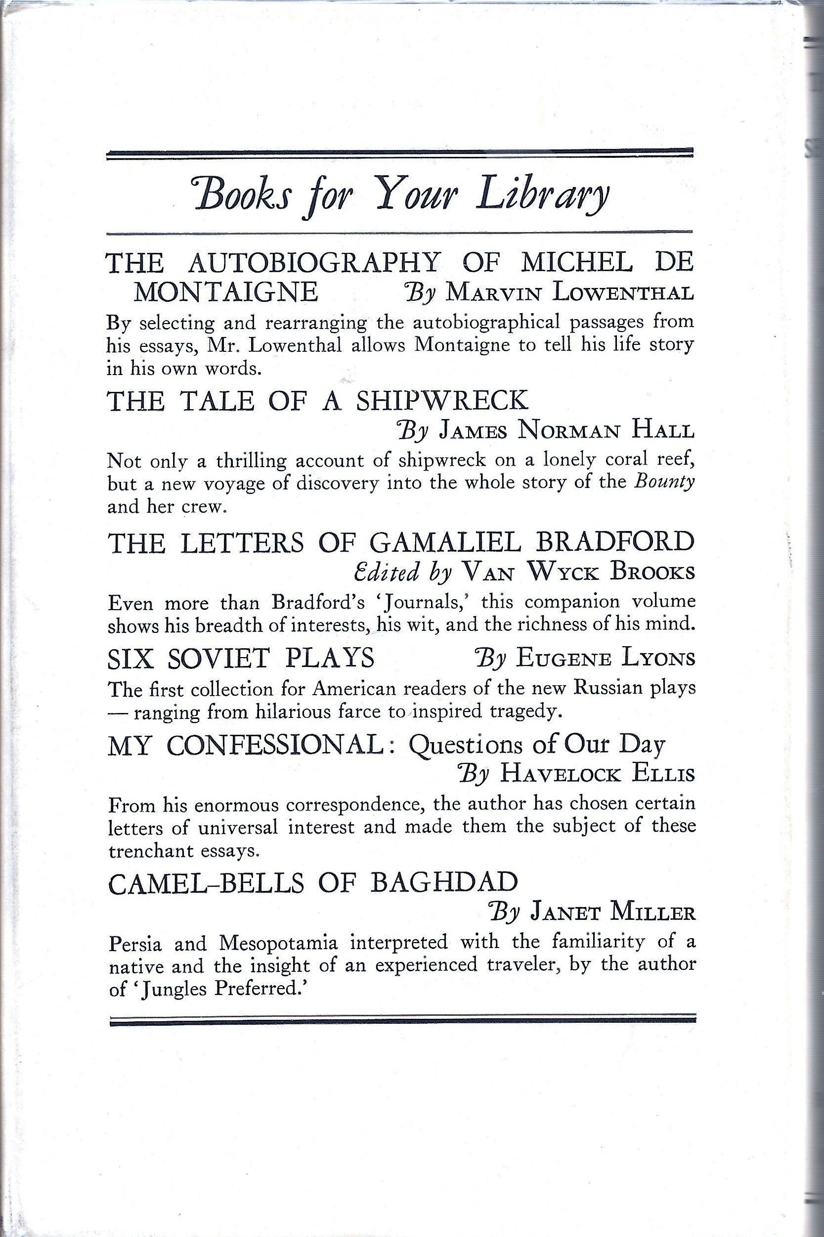 James Norman Hall co-author of the Mutiny on the Bounty trilogy and other South Sea tales, set sail for Pitcairn Island in 1933 becoming shipwrecked and endured an odyssey not unlike that of Captain Bligh, of the Bounty, which he and Charles Nordhoff recounted in Men Against the Sea published in 1934.