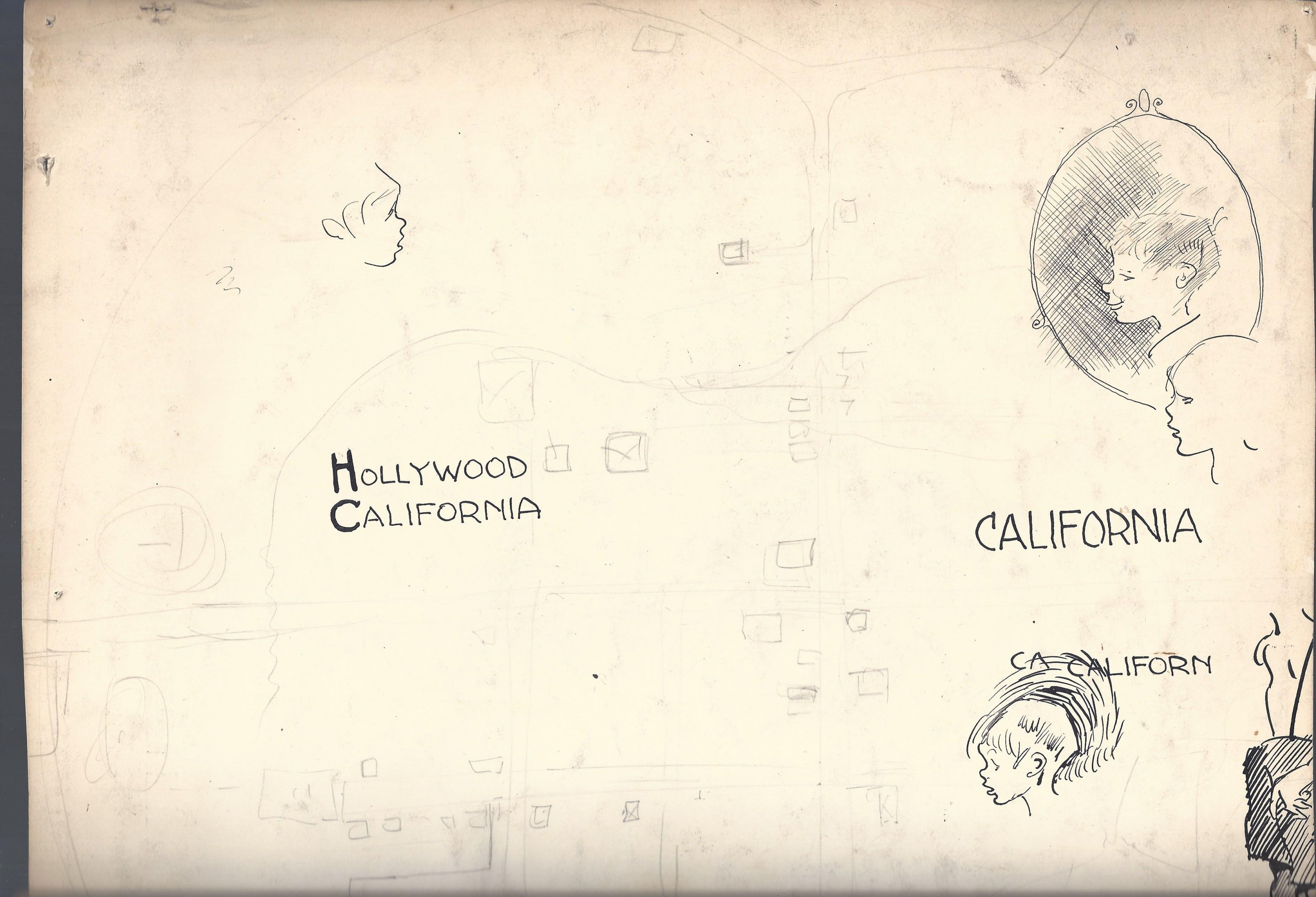 12" x 12". Circa 1920s. Hollywood doodling on verso.