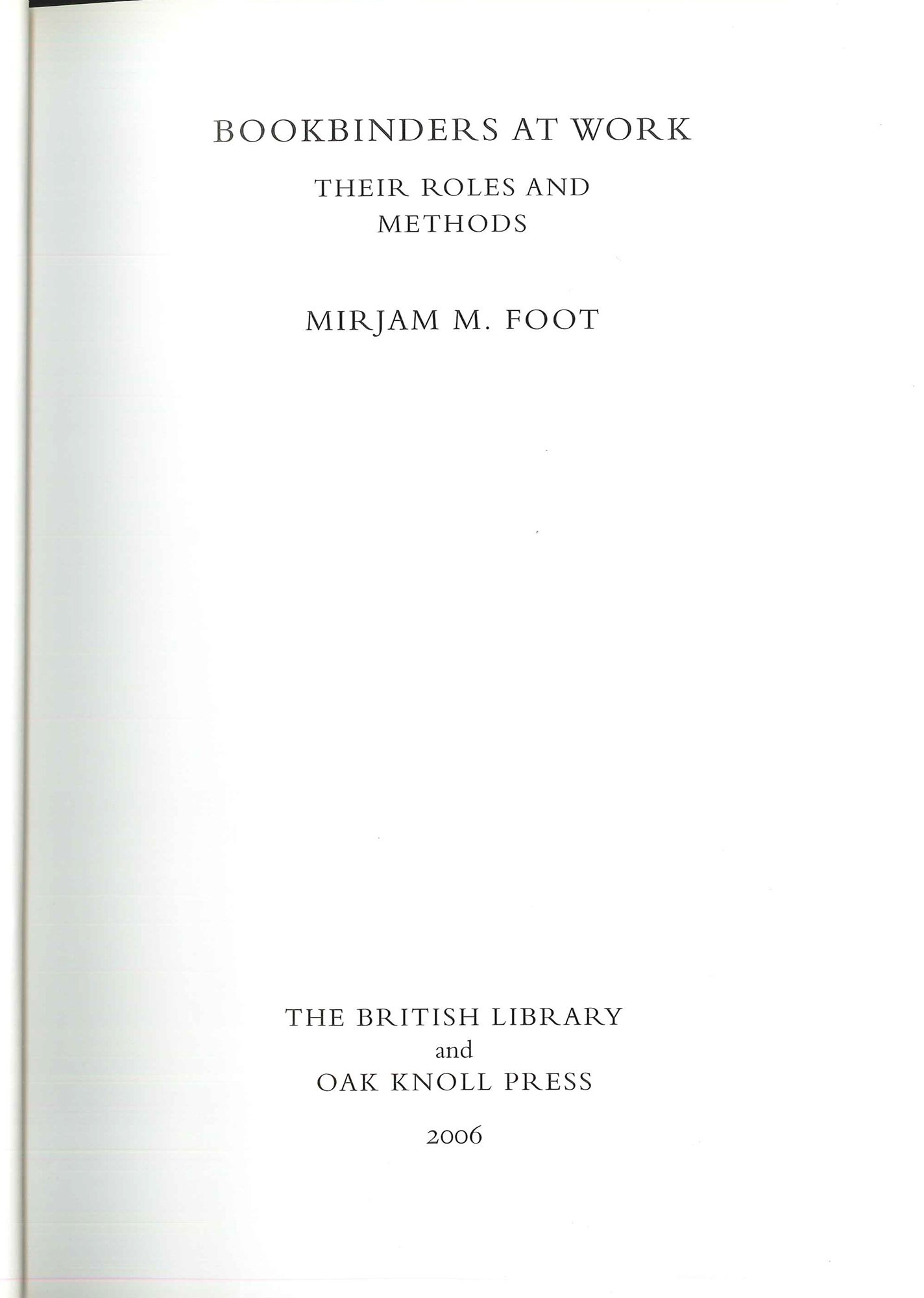 First edition. Fine in fine jacket. The role of the bookbinder in the production of saleable books and the significance of the binding in all its details, both structural and decorative, have often been disregarded or marginalized by bibliographers. In this book, Dr. Mirjam Foot sets out to reverse the trend by establishing working binders, and their materials and tools as an essential part of the production cycle. She reveals the inadequacy of bibliographical descriptions that lack essential binding information.