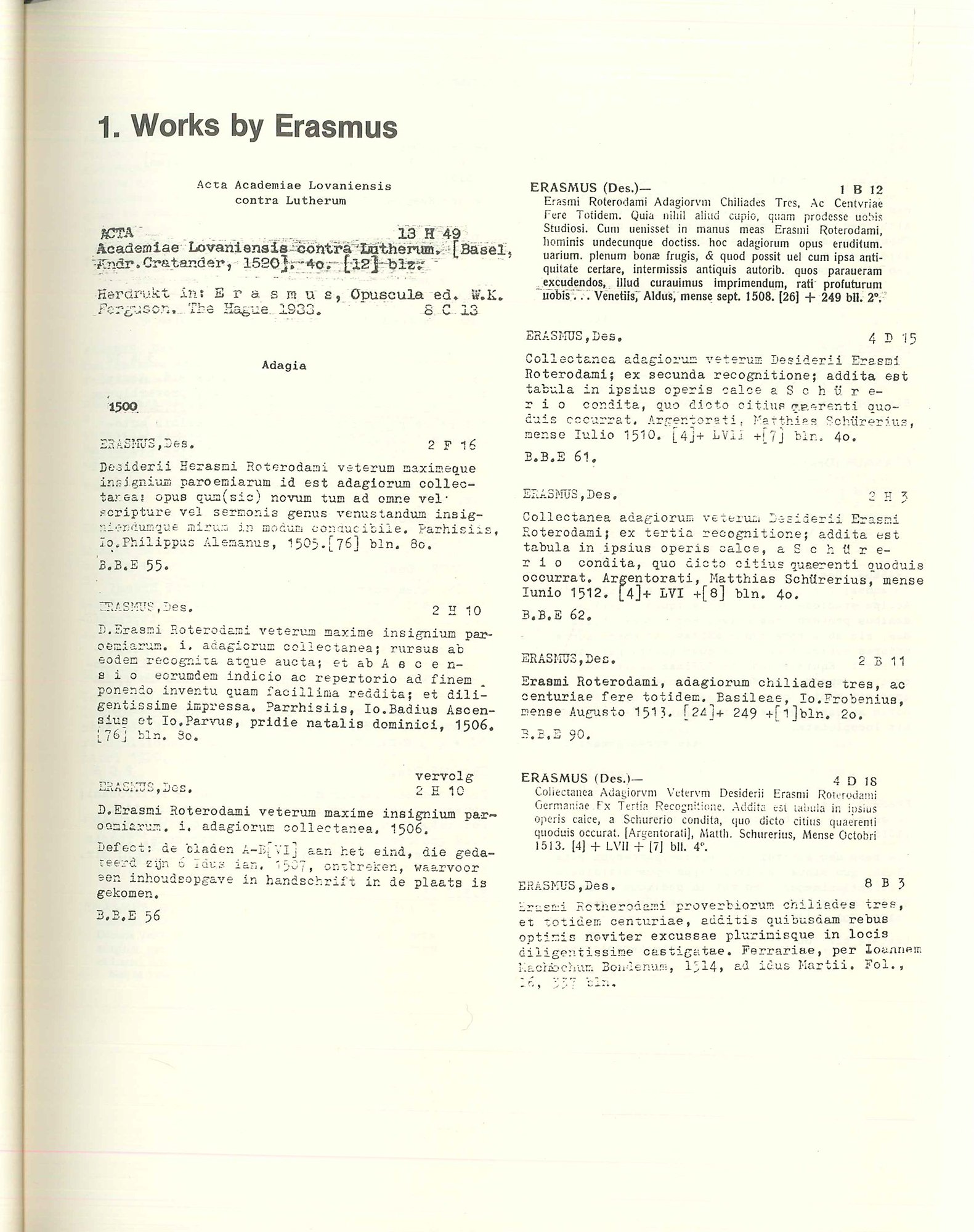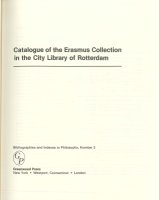 Contents: Introduction; Glossary of Dutch Words; Works by Erasmus; Works edited by Erasmus; Works about Erasmus: Subject Caalogue; Works about Erasmus: Author Catalogue.