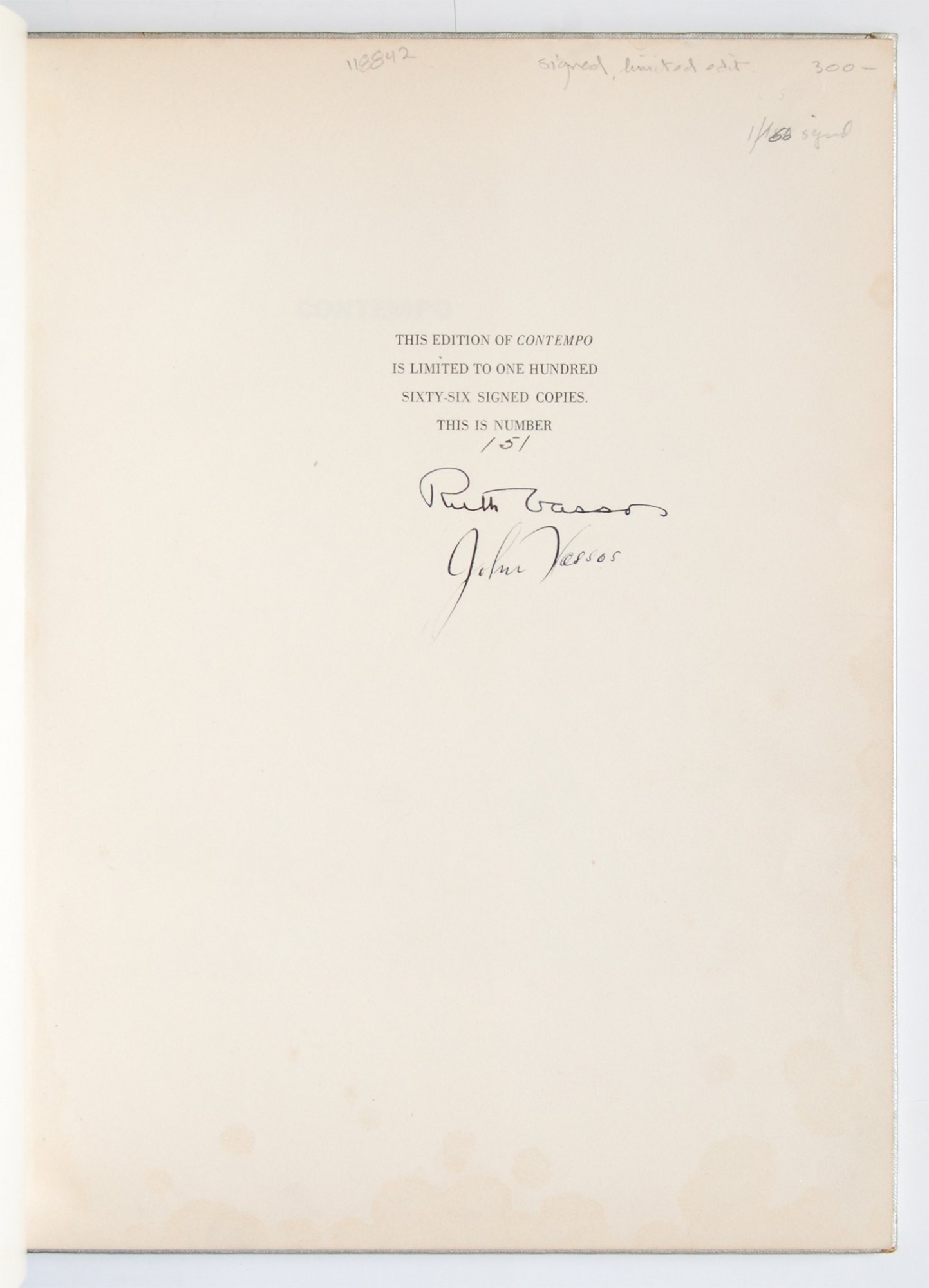 First edition, of which this is one of 166 numbered copies signed by both the author and the artist. Lacking the dust jacket. Minor rubbing to the edges of the slipcase, else a near fine copy. Illustrations, with foreword, by John Vassos. Depictions of aspects of modern American life just before the onset of the Great Depression.