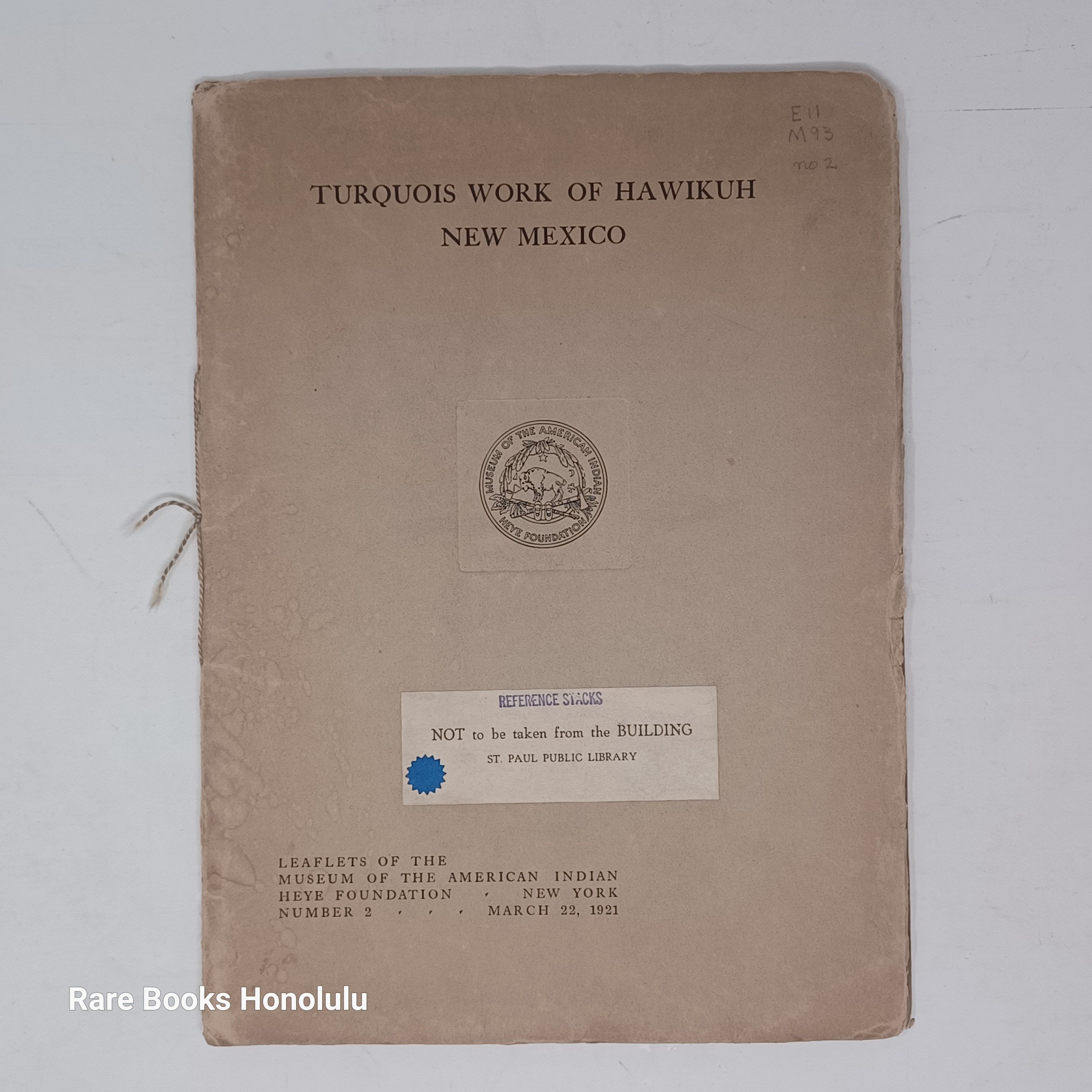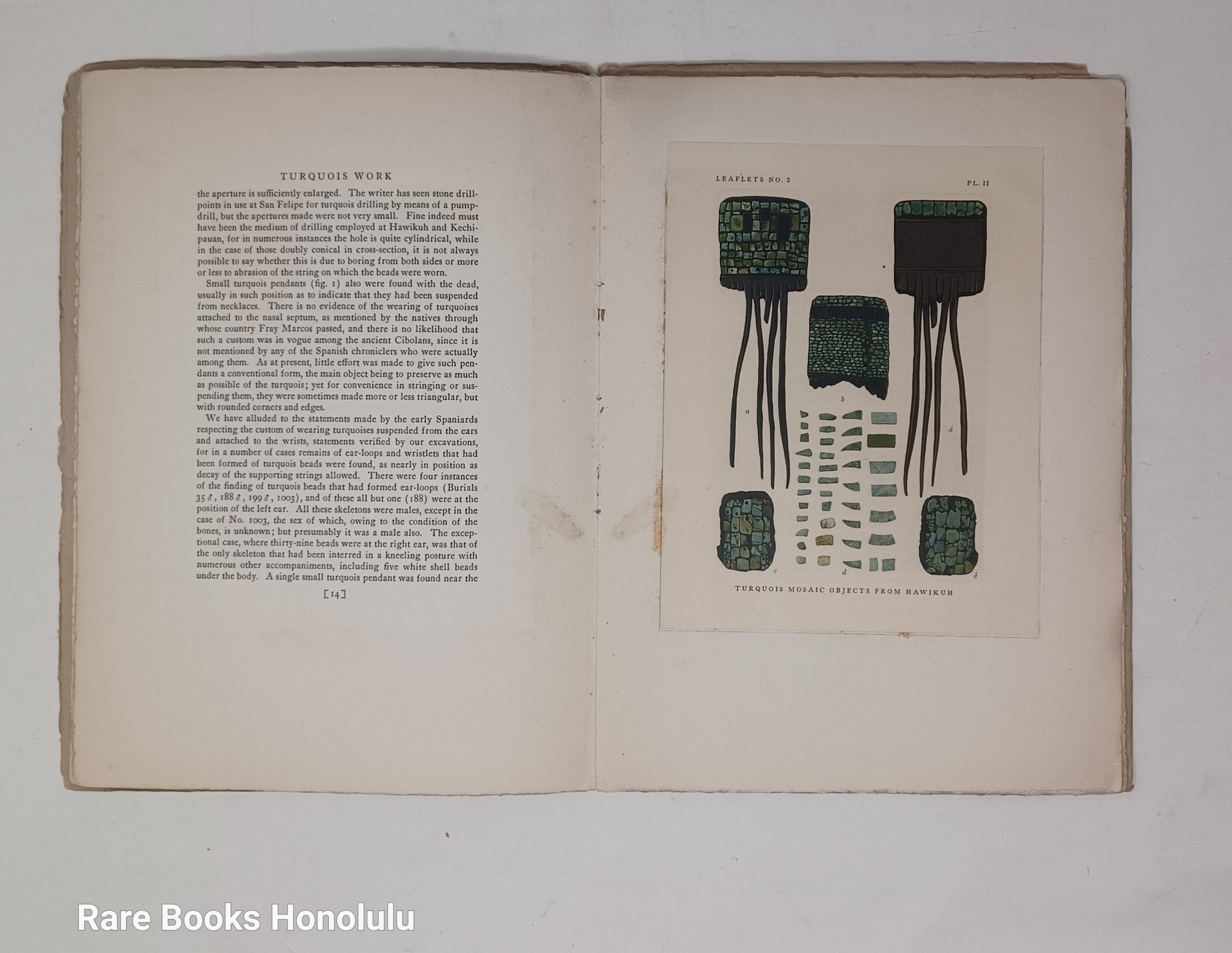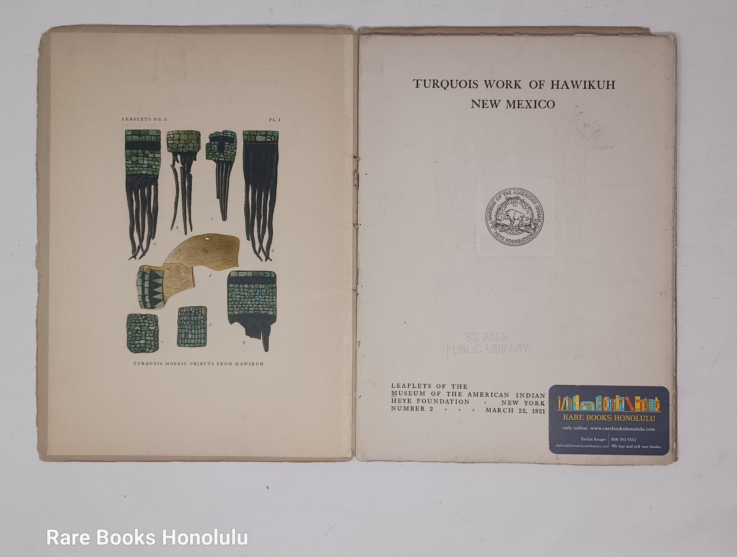 no. 2 Turquois Work of Hawikuh 1921, 1st edition, 30 pages, 2 tipped in color plates, illustrations in text