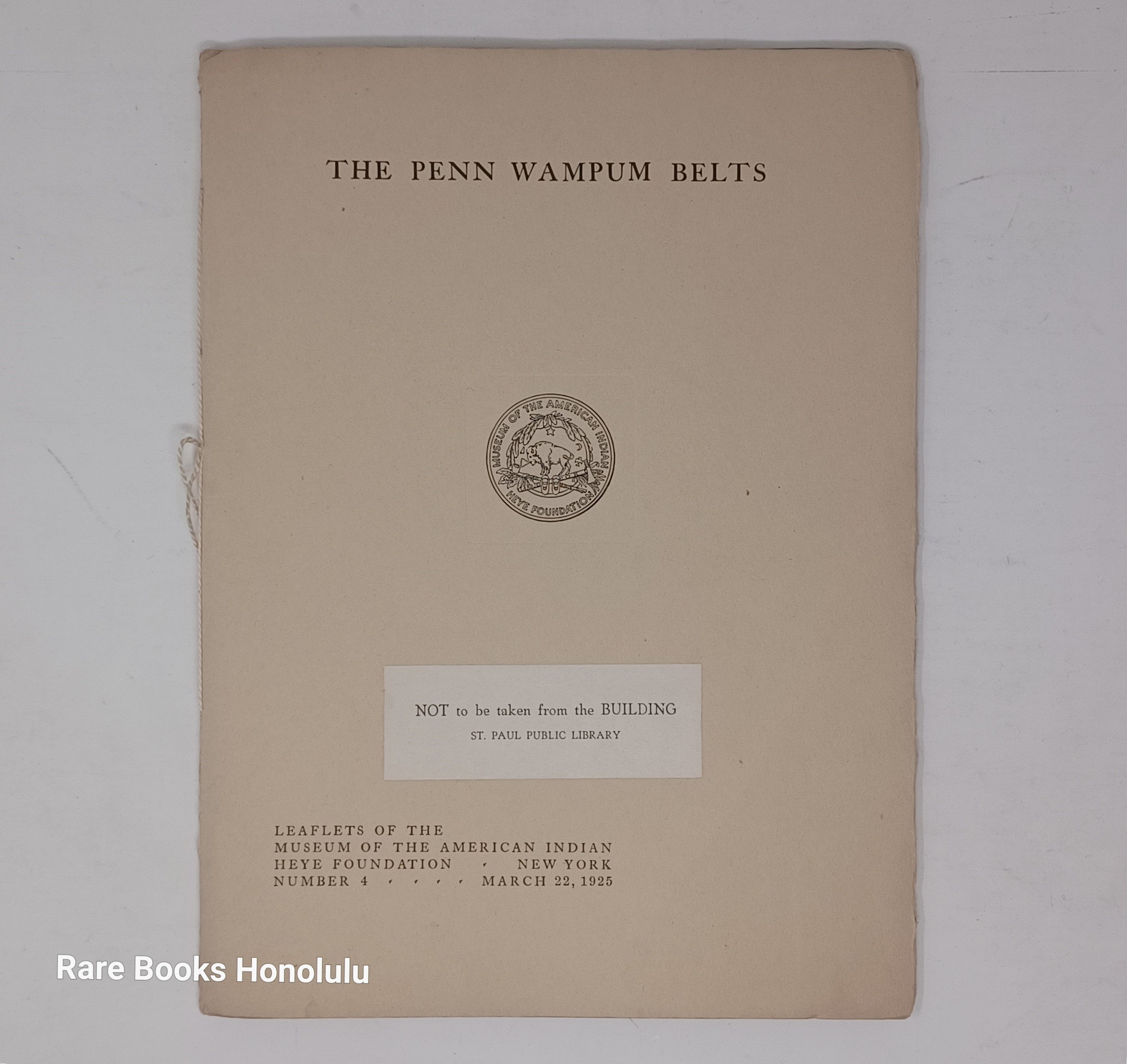 no. 4 The Penn Wampun Belts, 1925, 1st edition, 20 pages, 1 double-page color plate, 2 b/w plates, plate 1 seems to be missing.