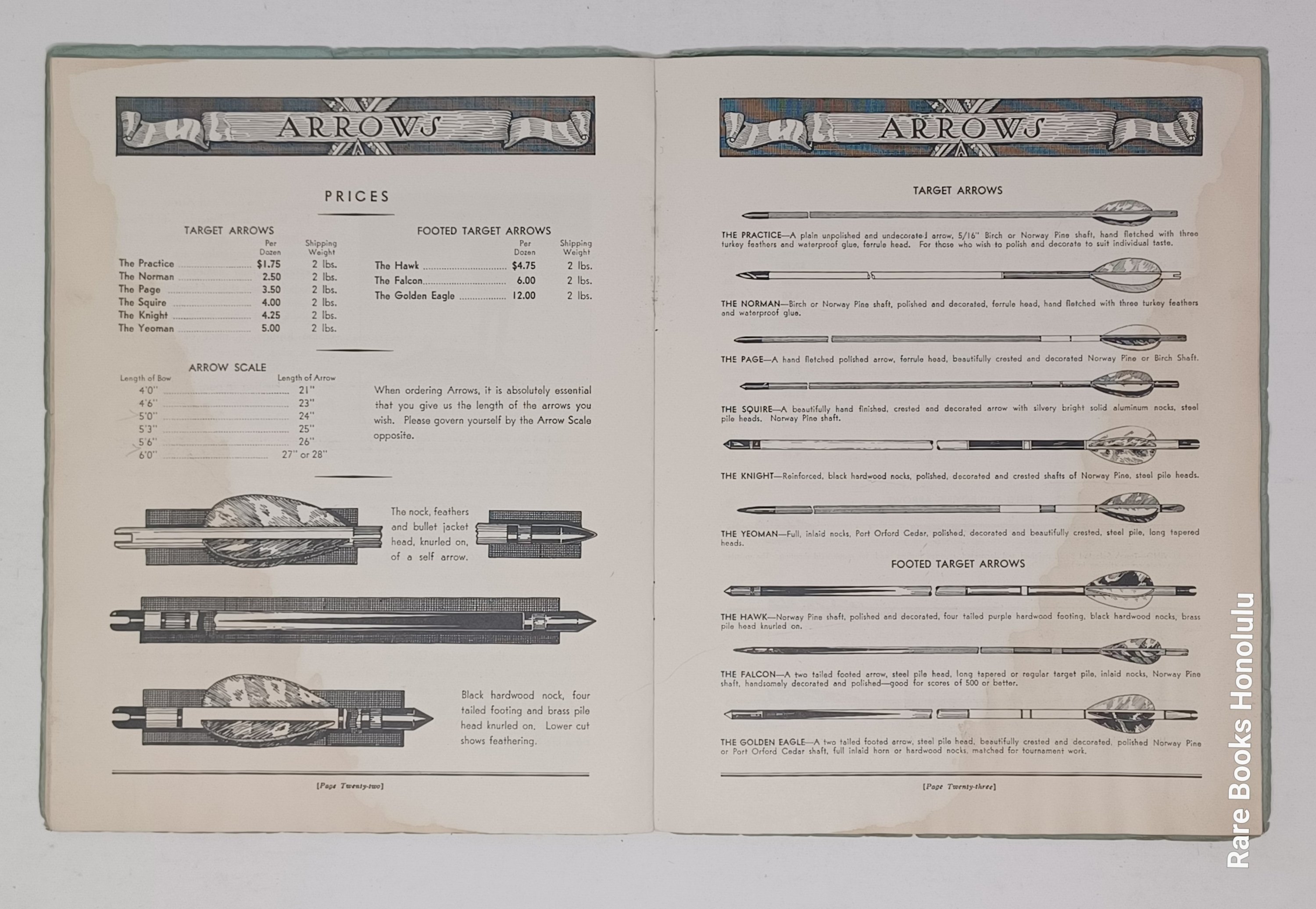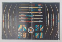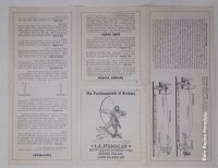 34 pages, 10" x 7.75", in illustrated wrappers, with a color double page and numerous b/w illustrations of archery equipment. Map of U.S. showing postal rates., showing bows, arrows and targets. Space for mailing label on the back, but this catalog has never been mailed.