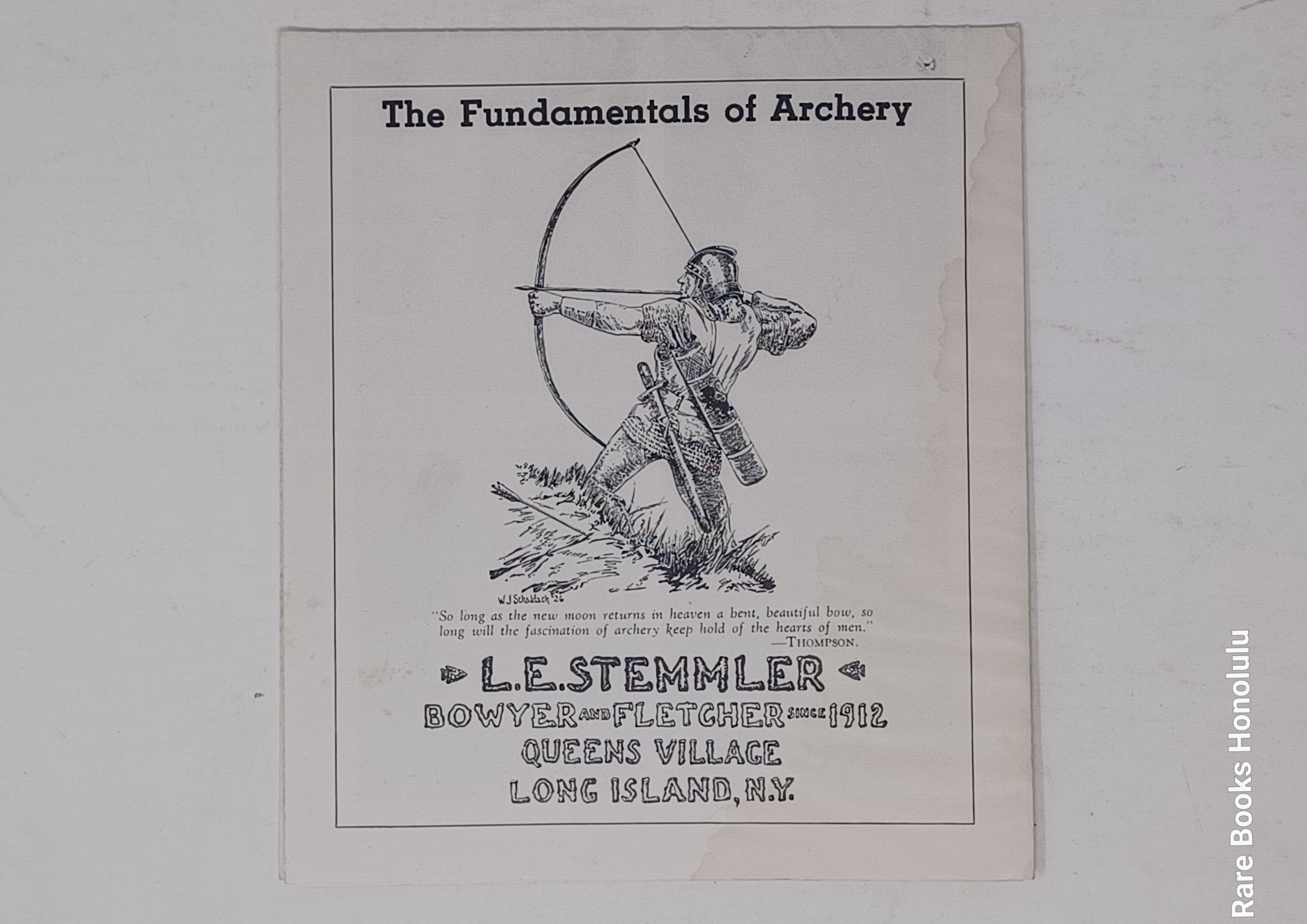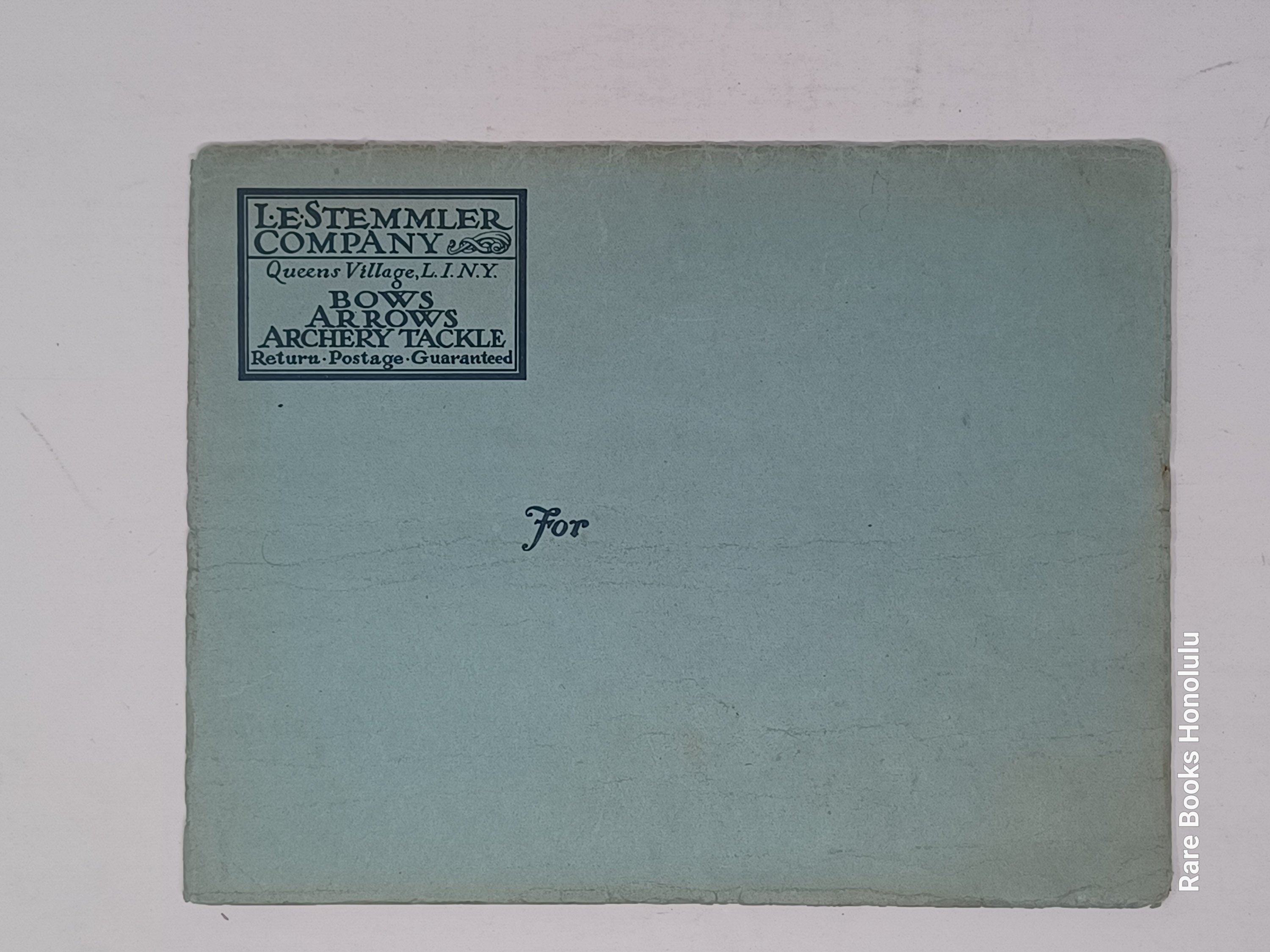 1/ Queens Village, Long Island, NY, L. E. Stemmler Company, ca. 1927 Art-Deco style catalog for all archery items: bow staves, bows, arrow materials, arrows, targets, etc.
