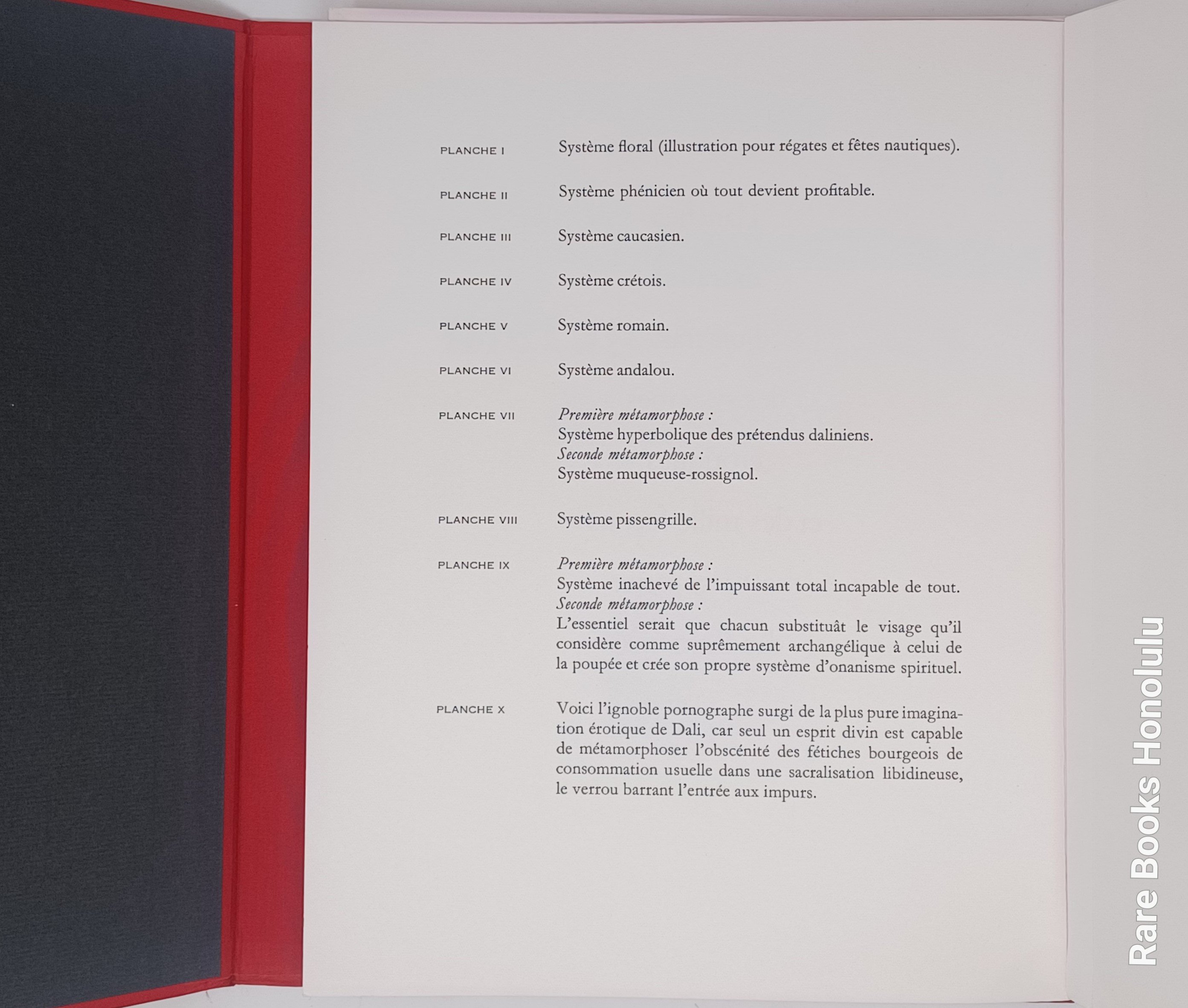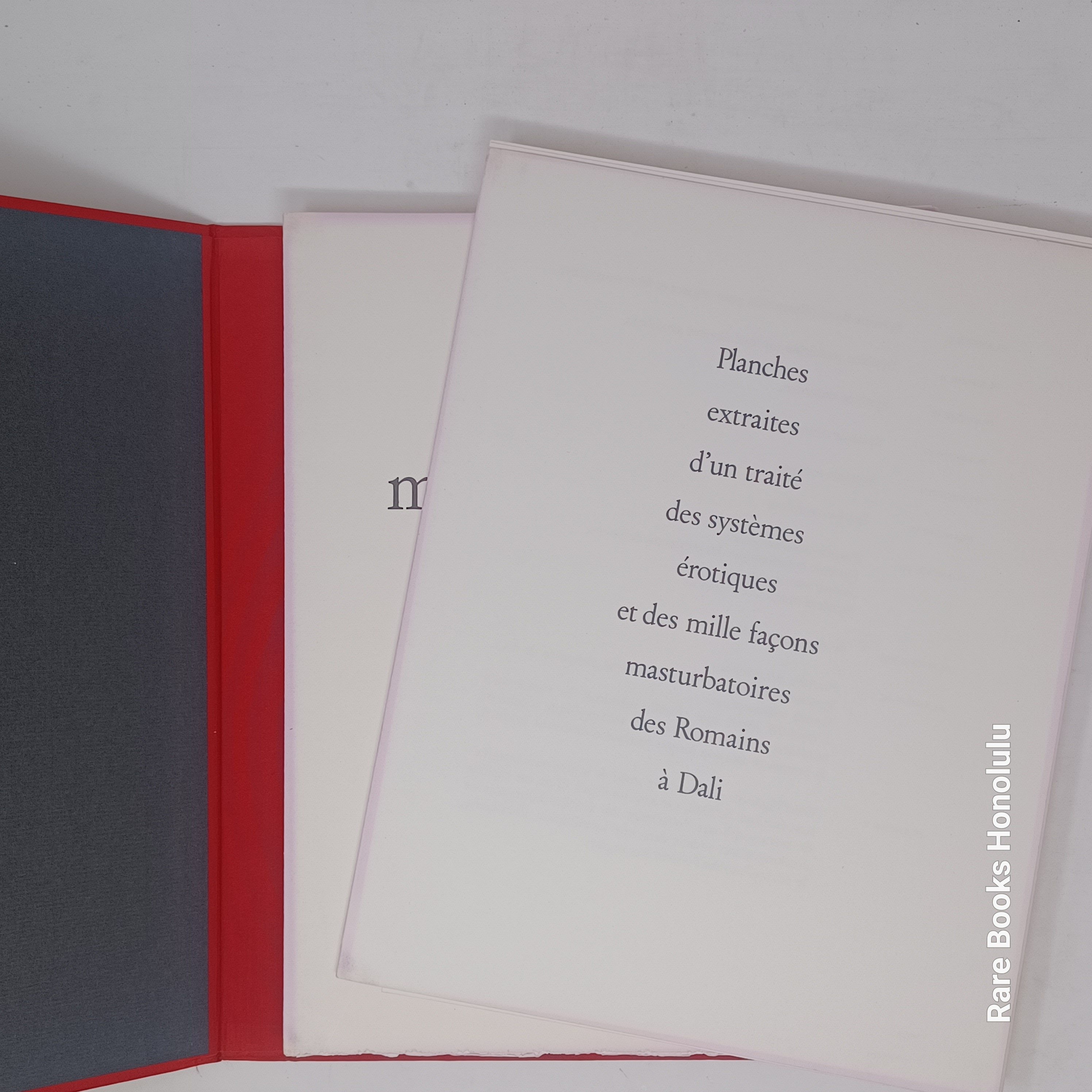 Folio in sheets, publisher's folder and slipcase. First edition. Illustrated with numerous drawings reproduced in the text. The work includes, in a separate section, “10 plates taken from a treatise on erotic systems and the thousand ways of masturbation from the Romans to Dali.”