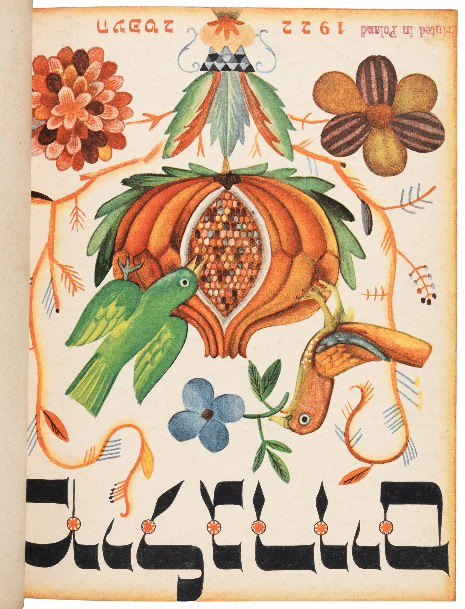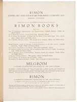 Rimon Publishing Company, Berlin, London, 1922 - 1923. Color plates, b/w illustrations, drawings and photos Text is in Yiddish. Literary Editors of the first issue are David Bergelson and Der Nister. Art Editor throughout is Rachel Vishnitzer.