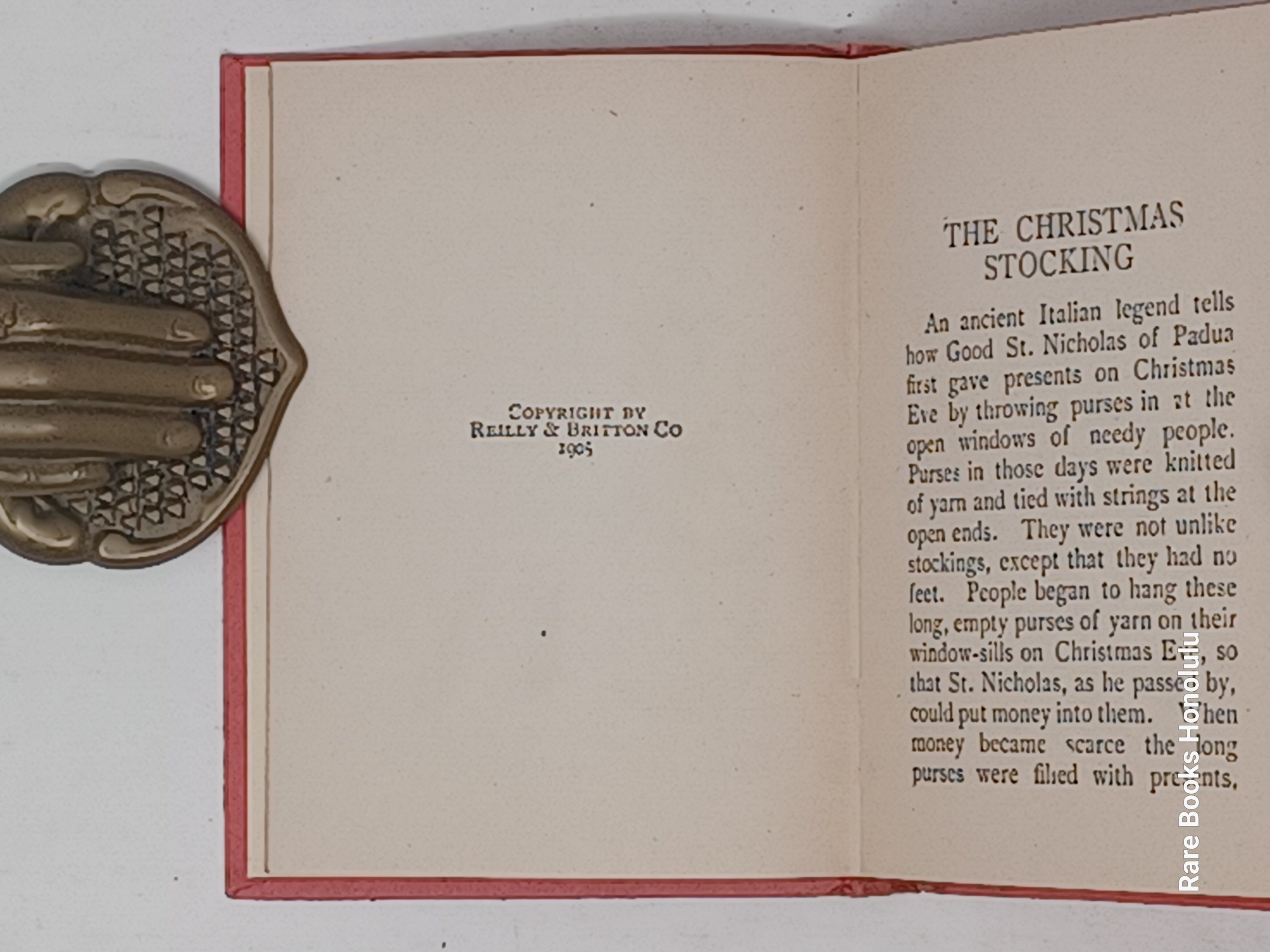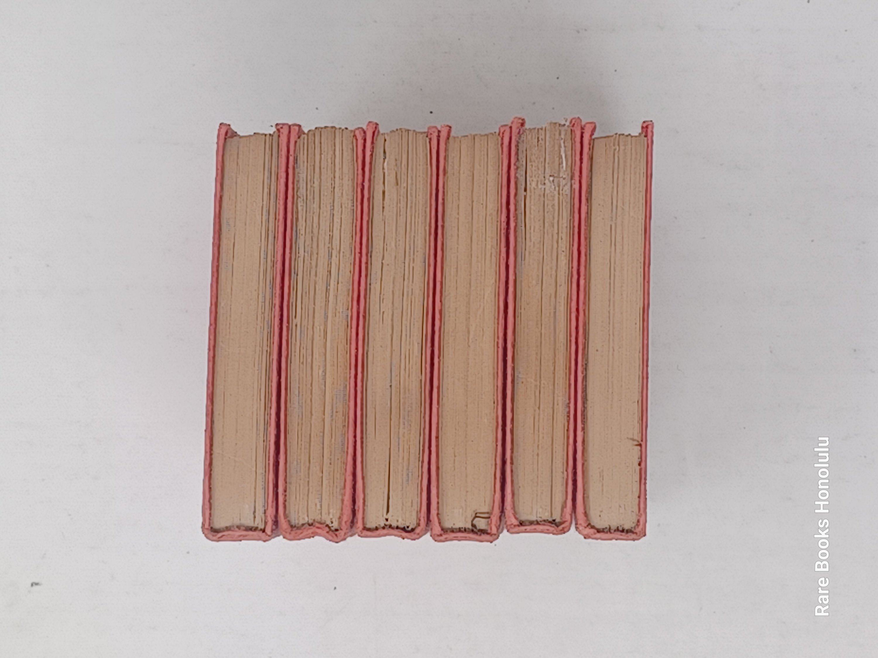 Chicago, Reilly & Britton, 1911. 6 volumes, hardcover. 4" - 5". , Four books are dated 1905, one 1906 and the 6th 1911. Bound in original red paper covered boards with pictorial paste downs to front covers that are surrounded by a stamped design of holly and berries. White end papers, each book with numerous full-page color and some black and white illustrations throughout, the only credited illustrator John R. Neill for Peter Rabbit. Introductions by L. Frank Baum. Publisher's ads at ends