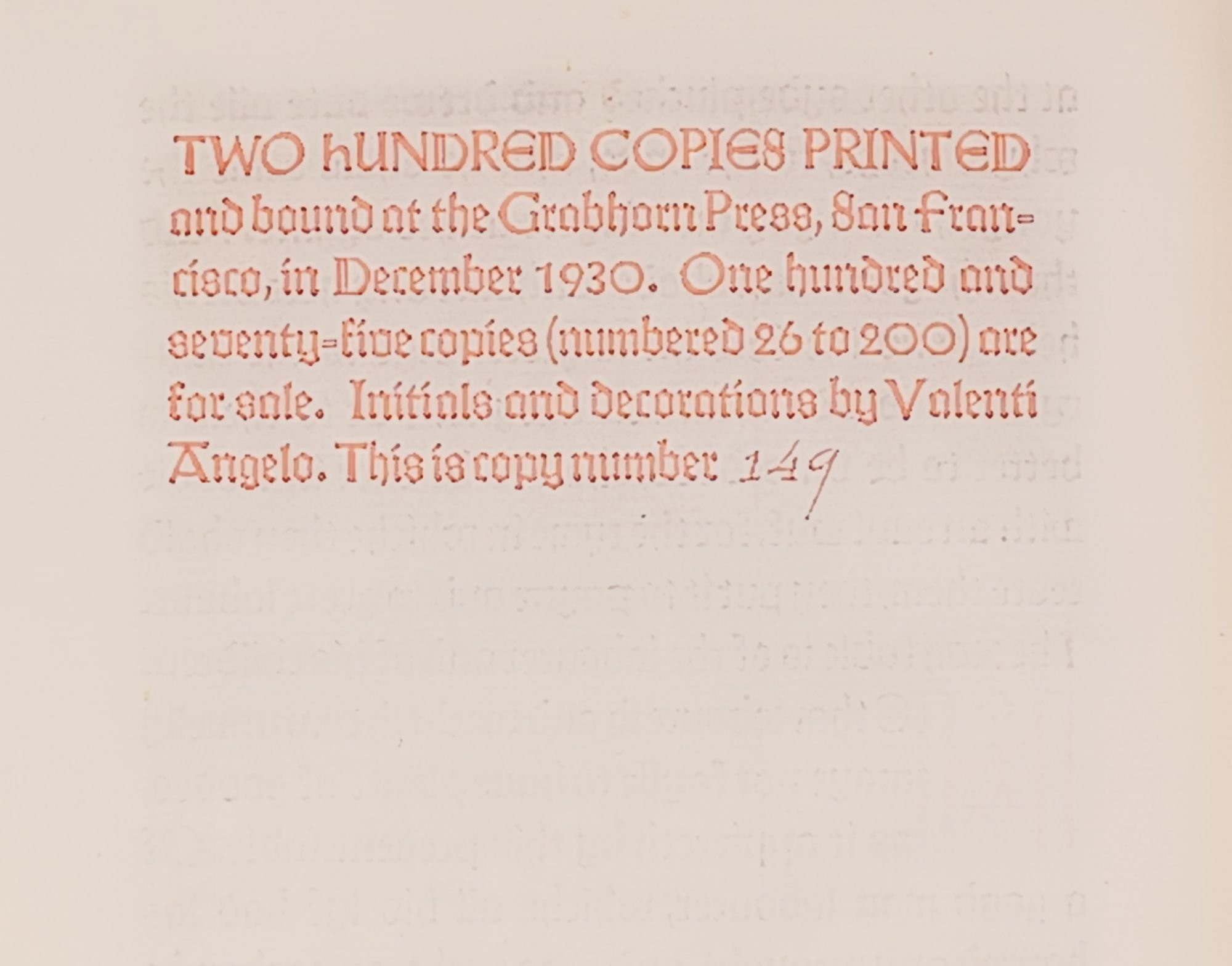 San Francisco, Grabhorn Press, 1930, Hardcover