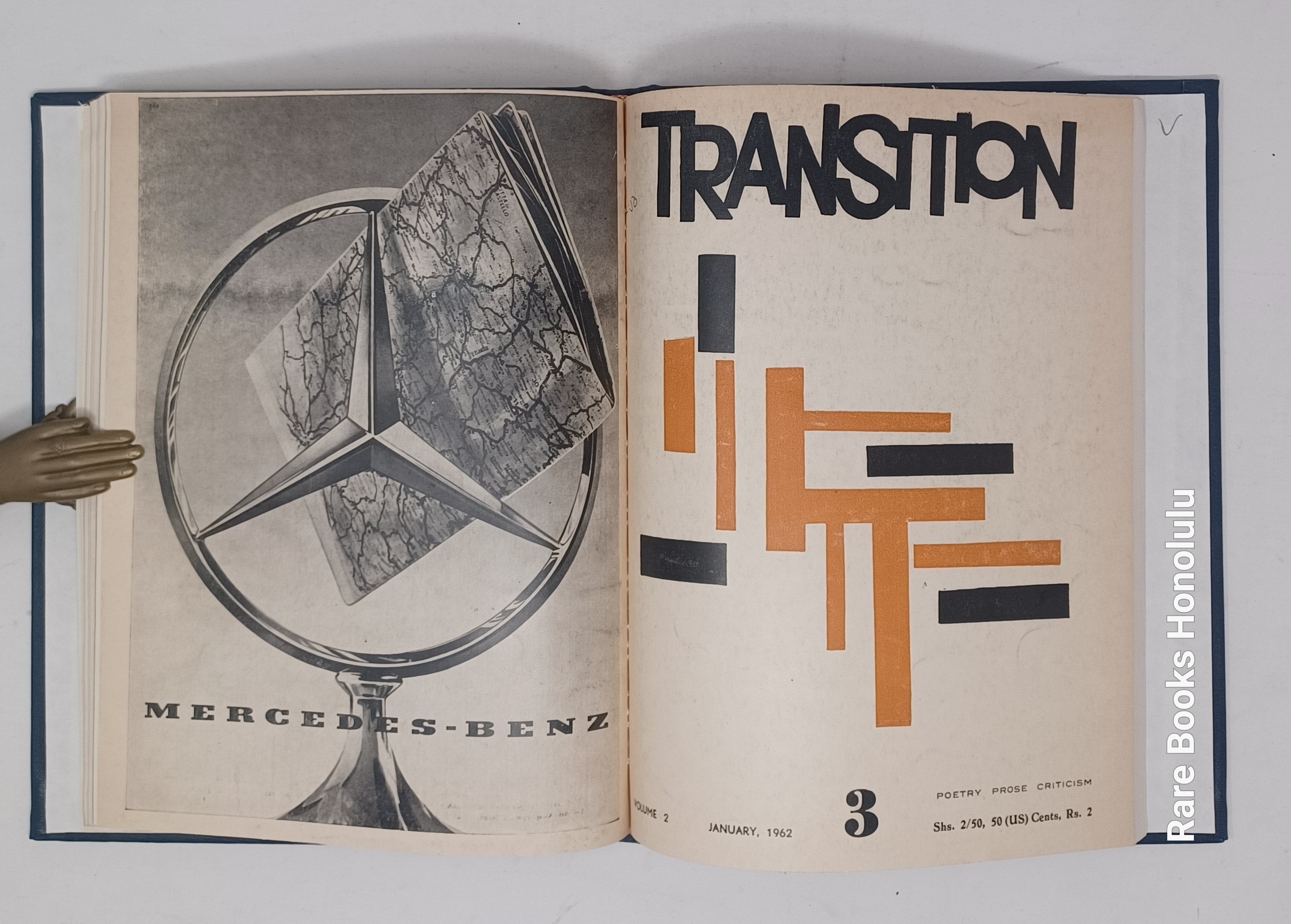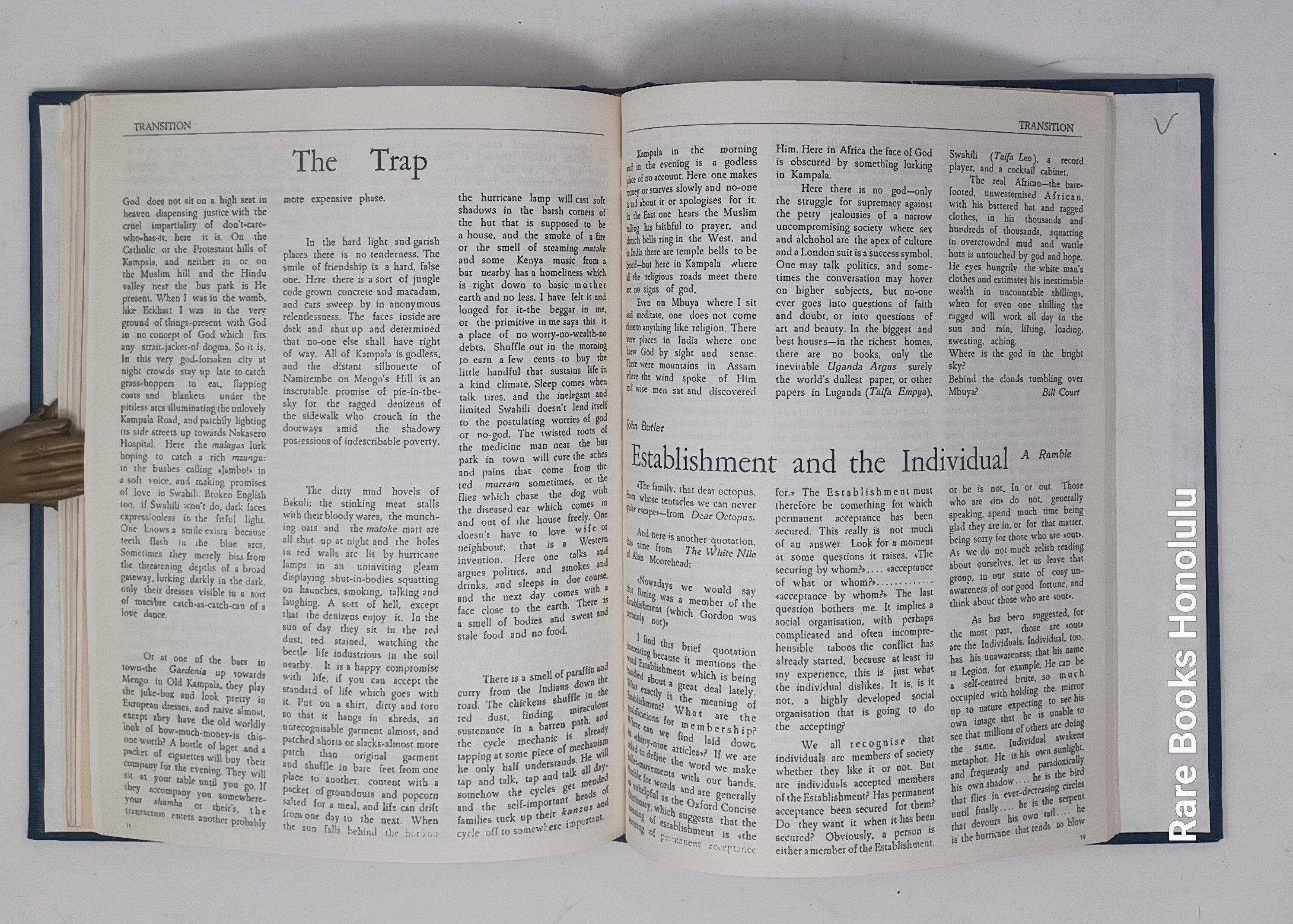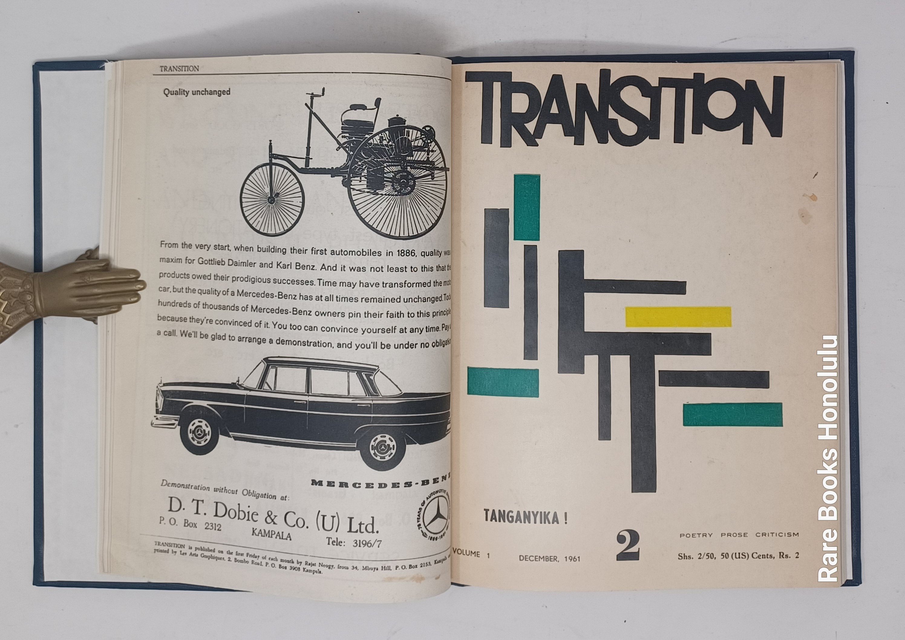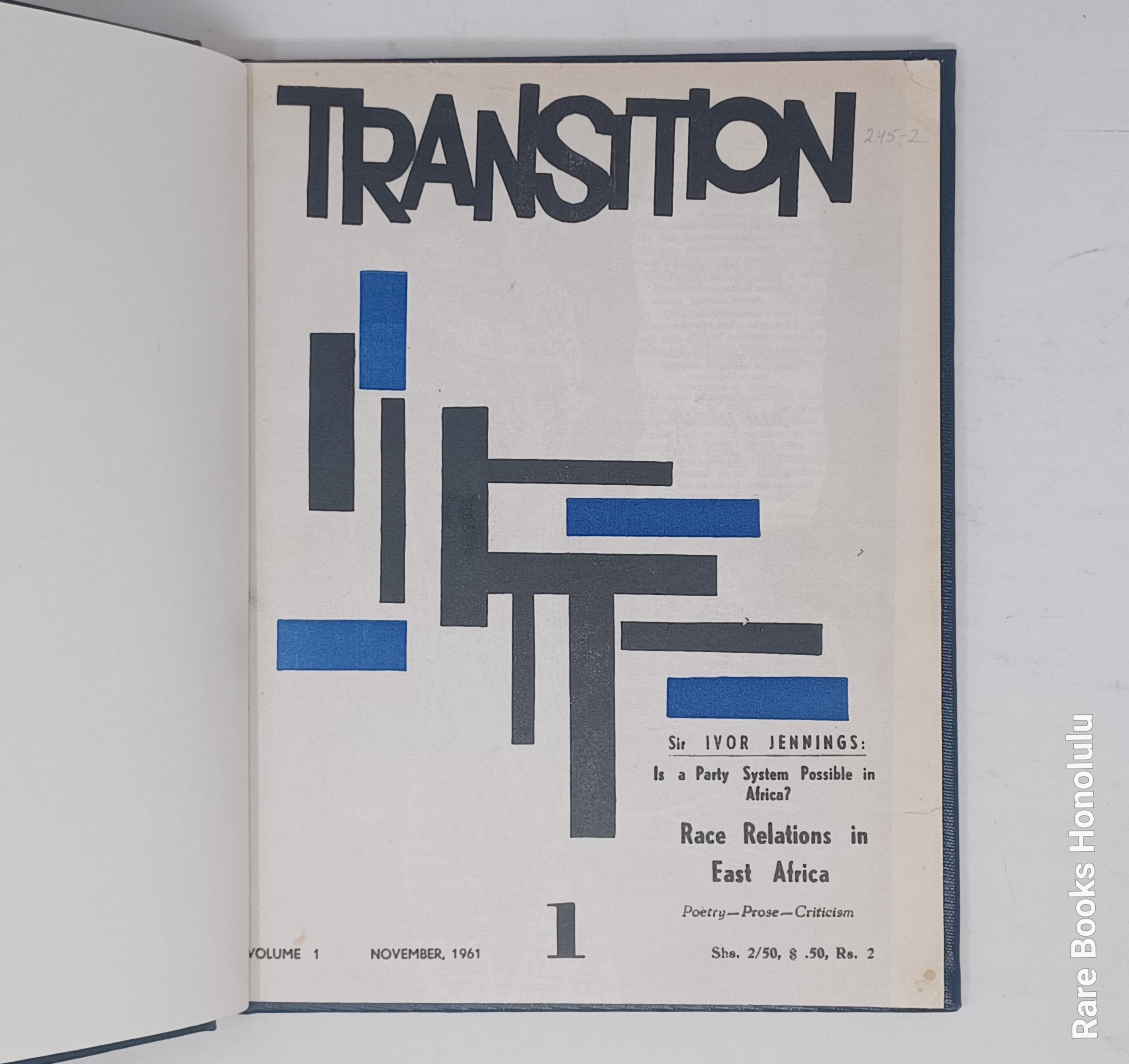 TRANSITION, Nos. 1-3, Uganda, Kampala, 1961. 11 x 8.5", bound together in hardcover binding, in blue buckram, title pages preserved.