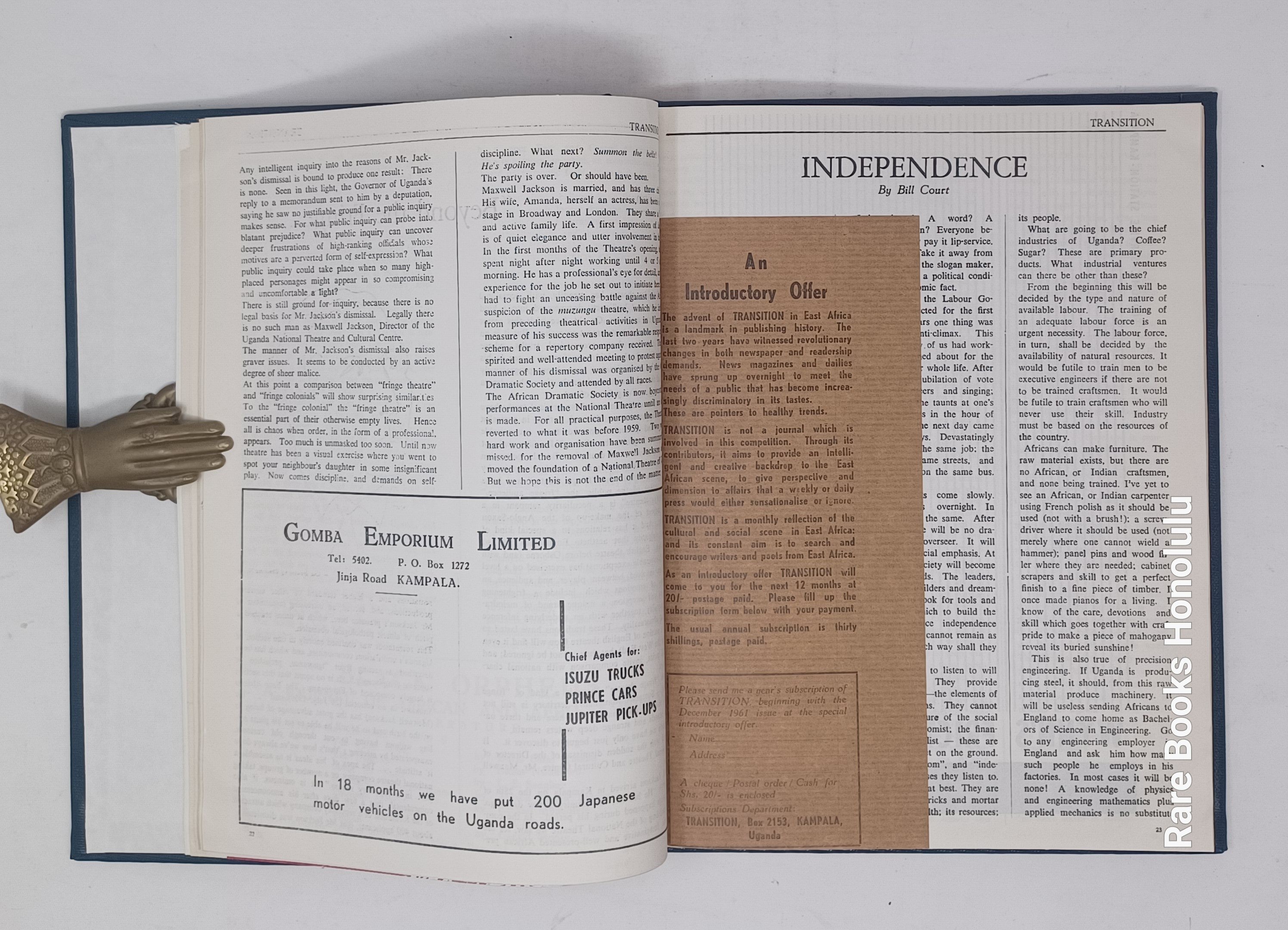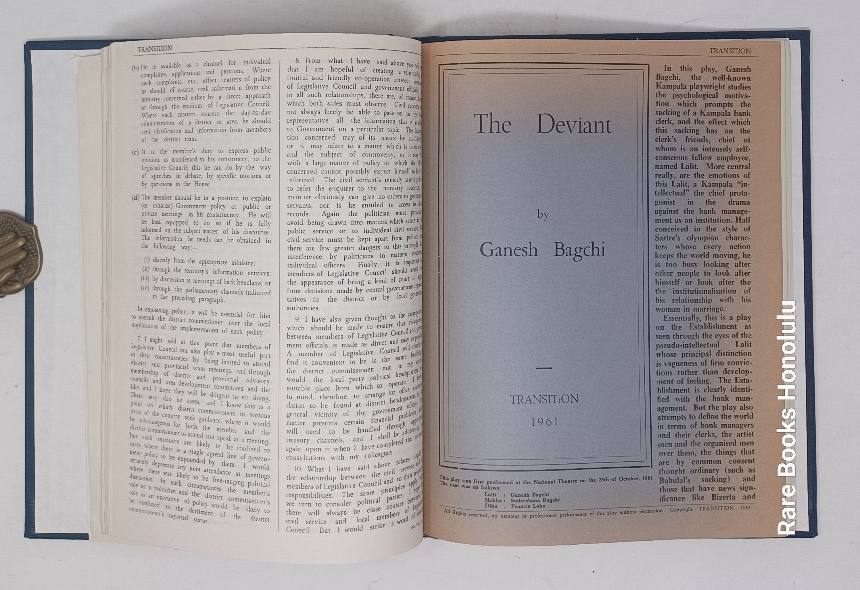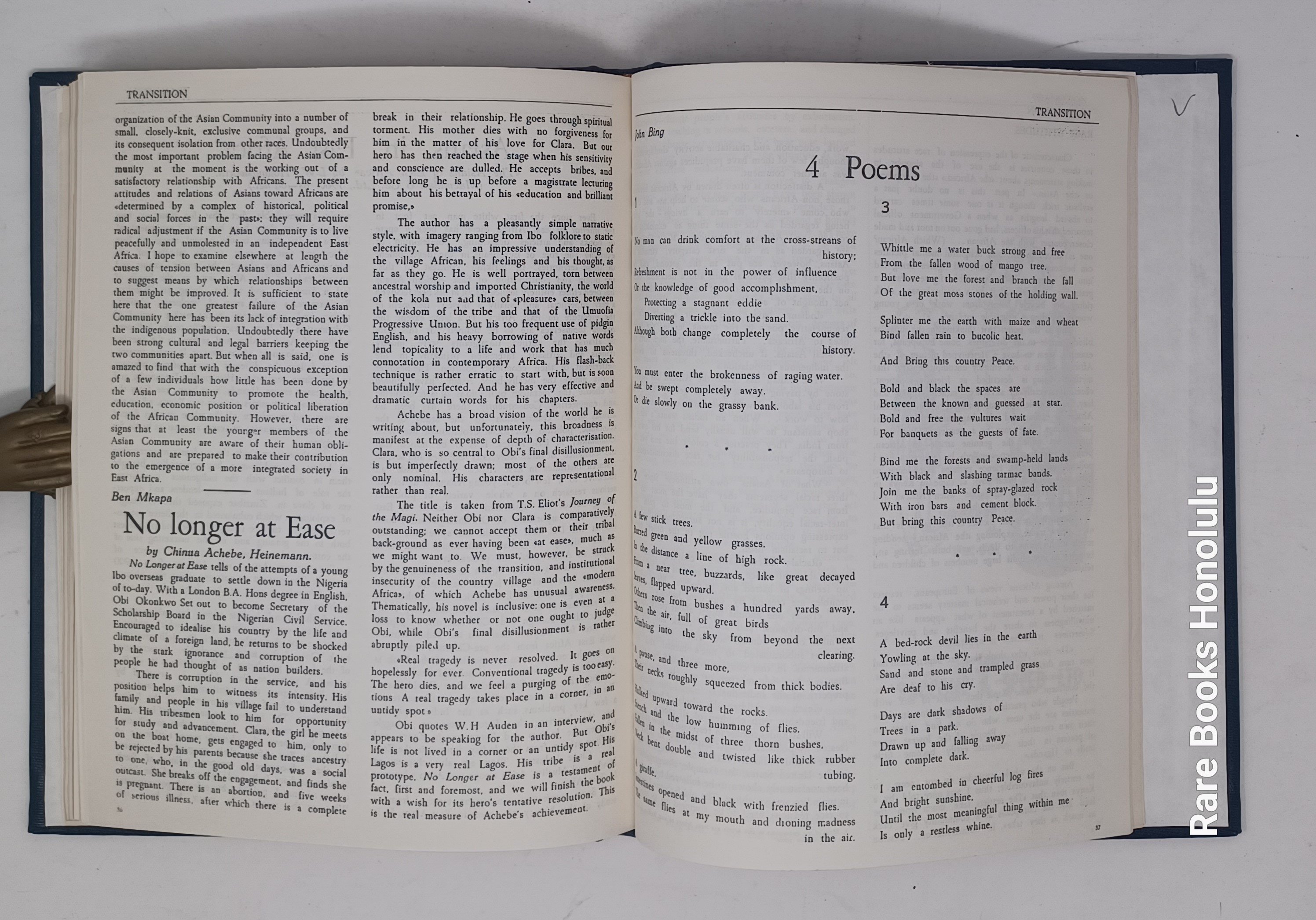 TRANSITION, Nos. 1-3, Uganda, Kampala, 1961. 11 x 8.5", bound together in hardcover binding, in blue buckram, title pages preserved.