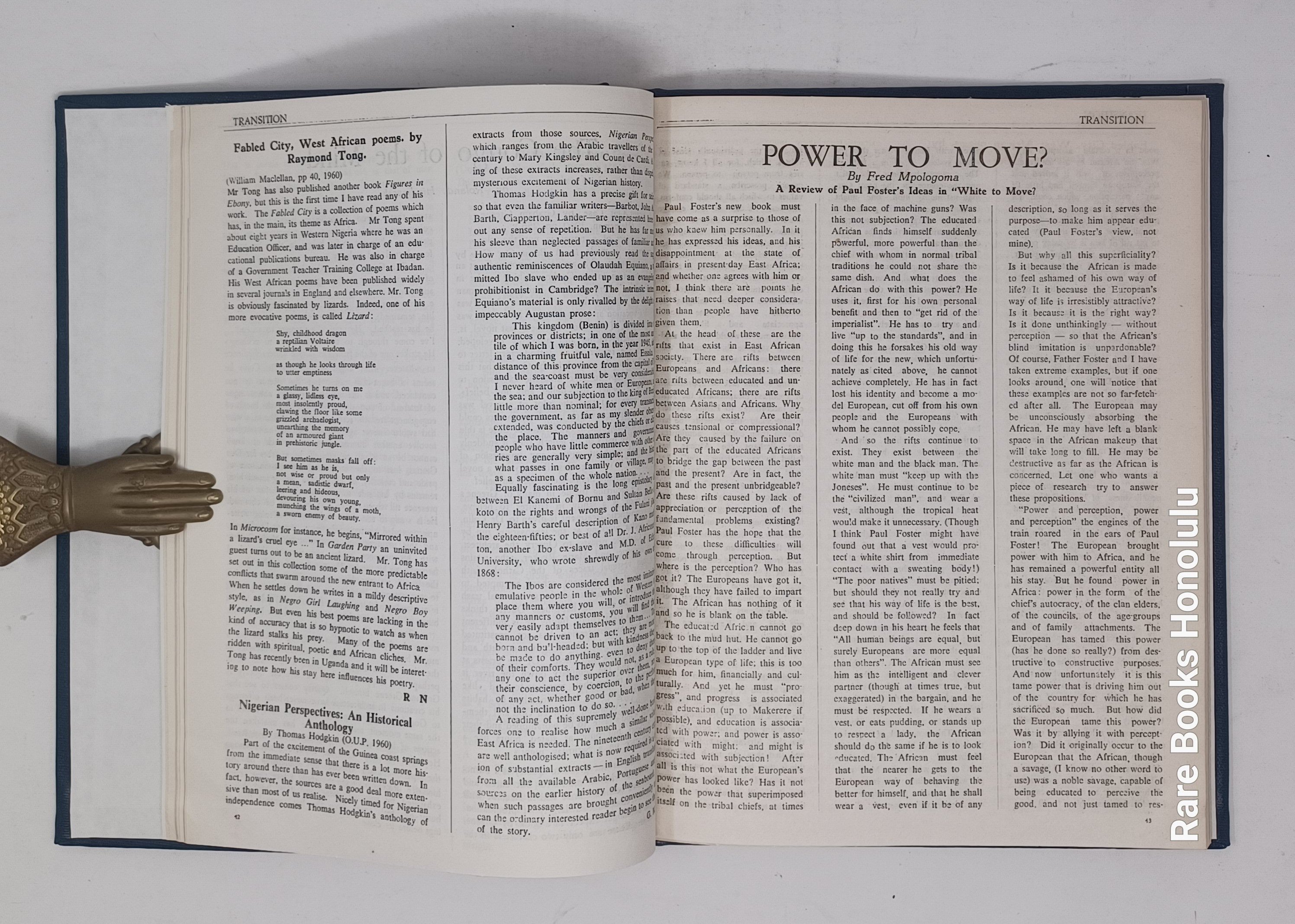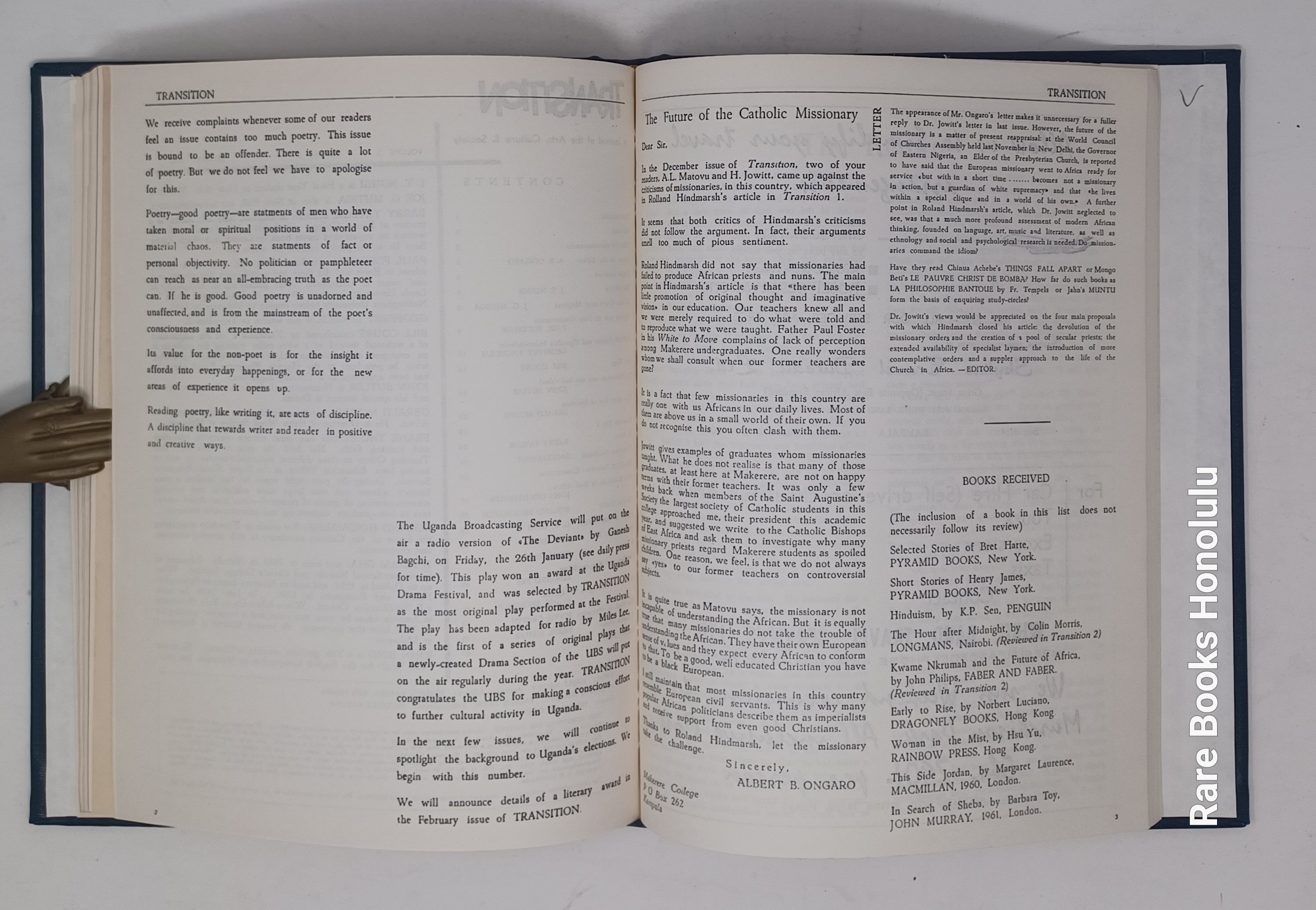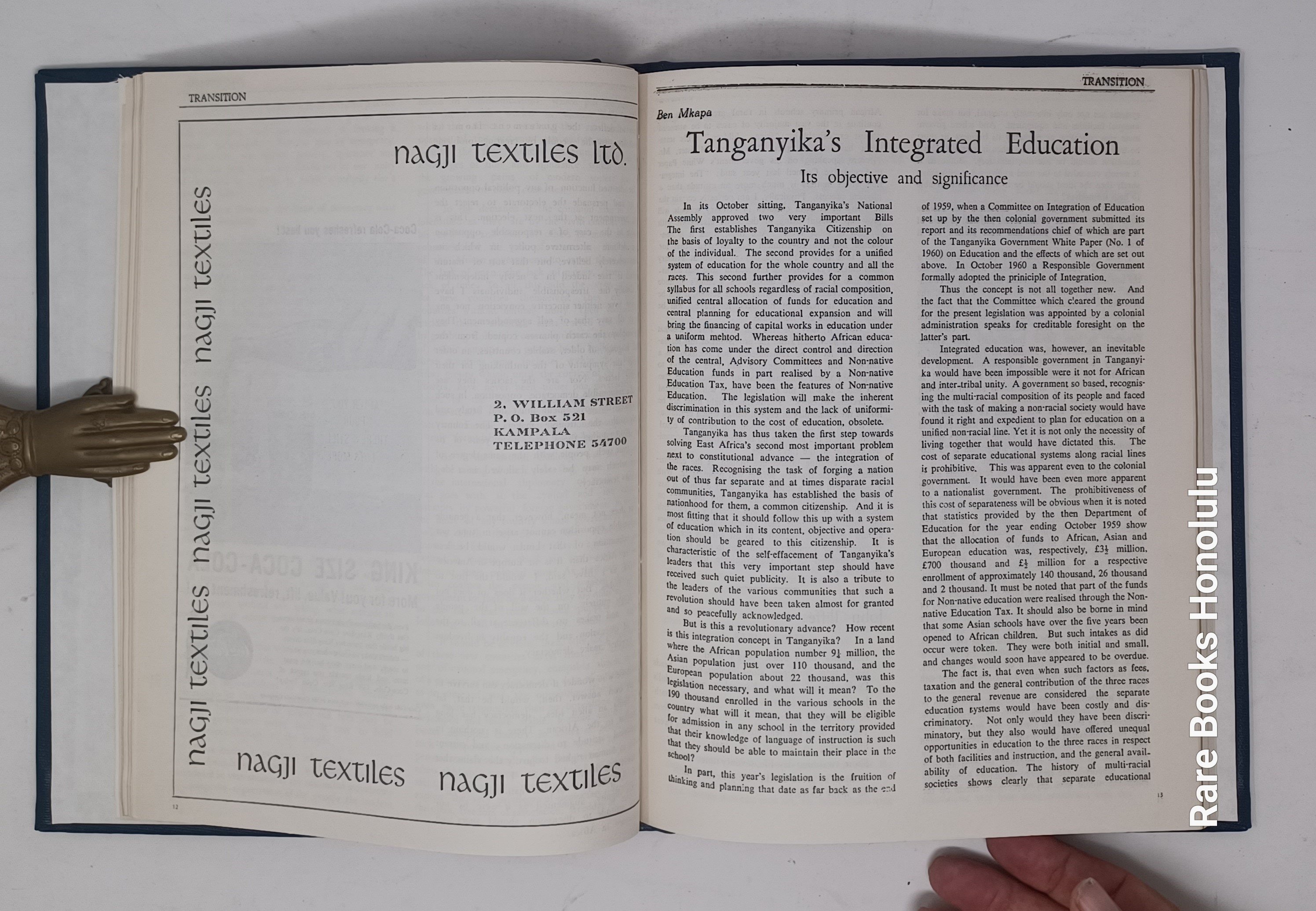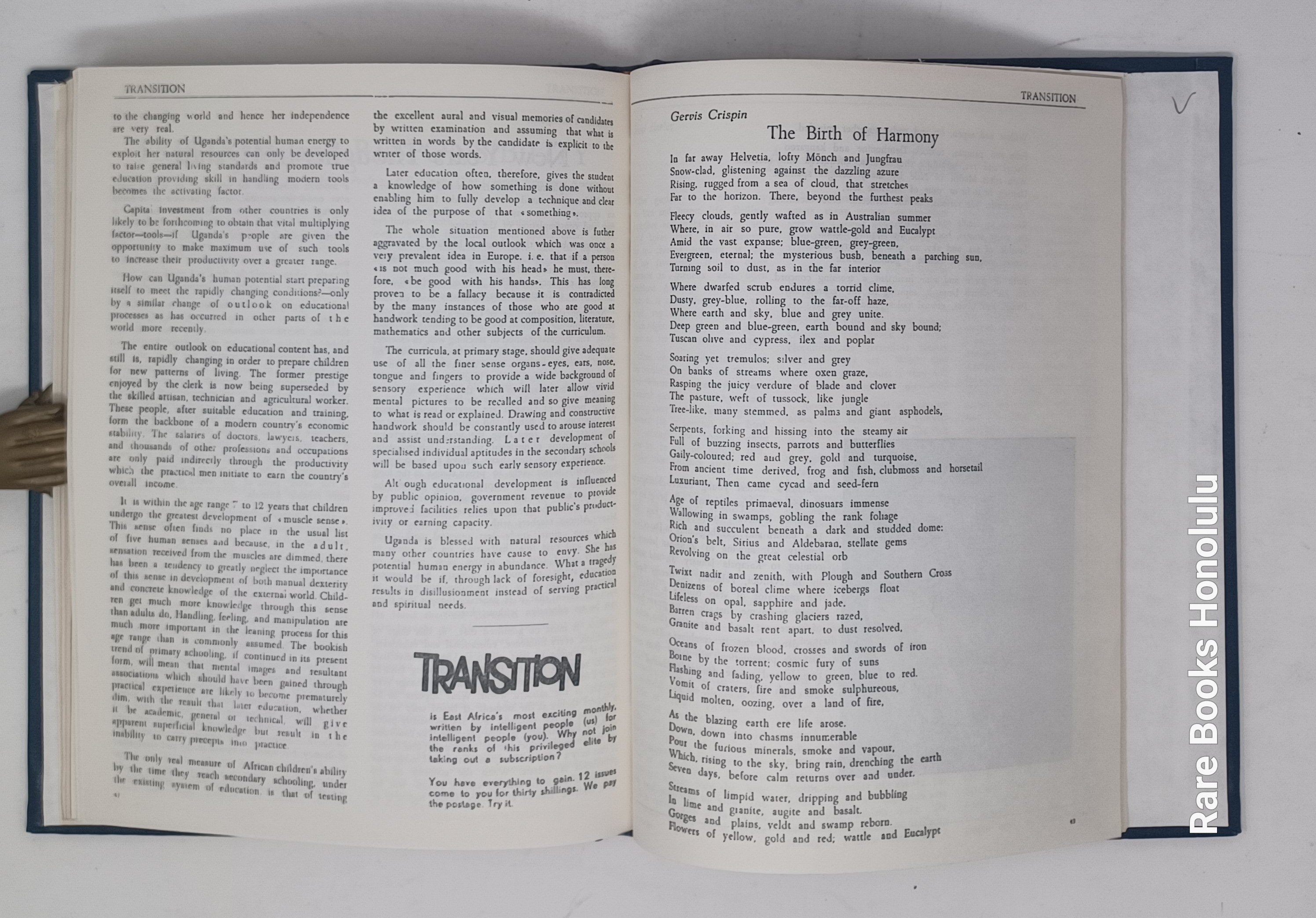 TRANSITION, Nos. 1-3, Uganda, Kampala, 1961. 11 x 8.5", bound together in hardcover binding, in blue buckram, title pages preserved.