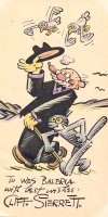 Original color sketch of Paw, signed, undated, on 3 1/2 x 7 1/4 card stock. The drawing is rendered in black ink and colored pencil. In very good condition. Purchase directly from Schulsonautographs.com Item ID: 5083