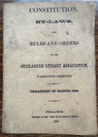 Very early Washington Territorial imprint for the Steilacoom Library Association which was organized in March 1858. Includes the Constitution, By-laws, and Rules and Orders for this nascent library organization.