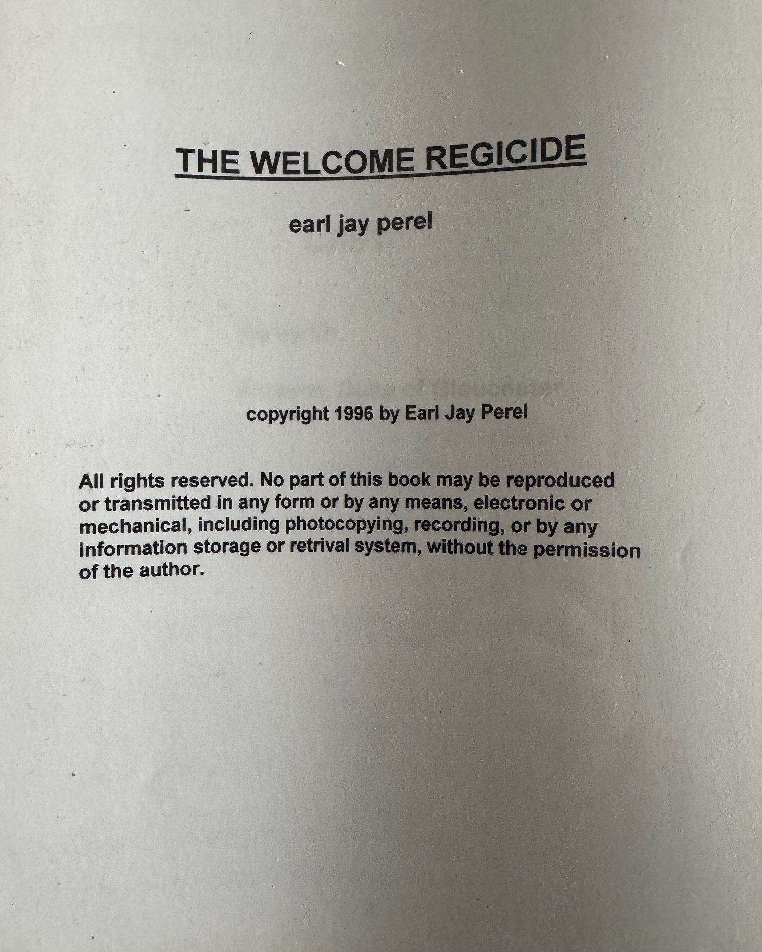 11. The Welcome Regicide, manuscript play, spiral bound, 1996. (2 copies)